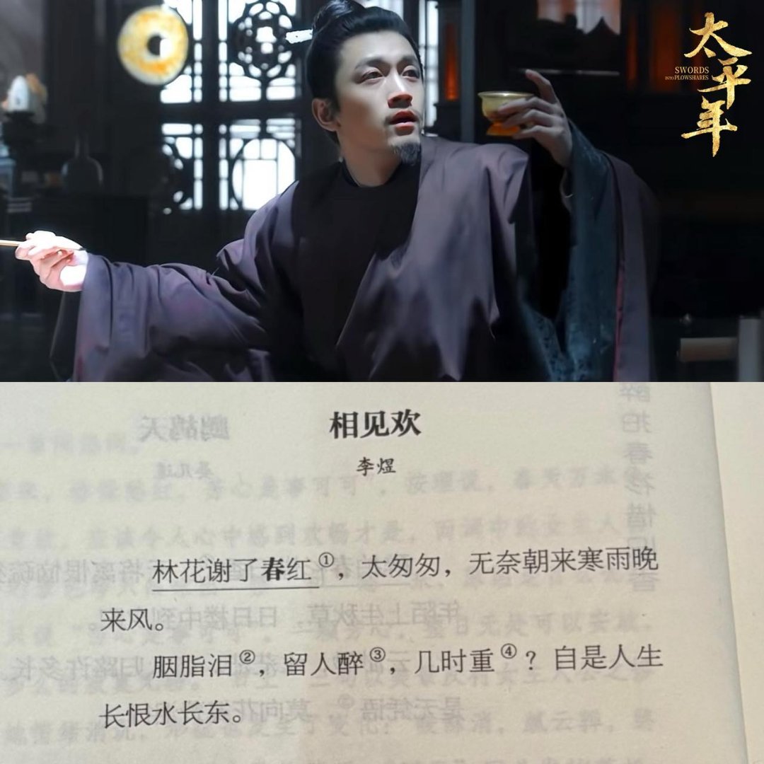 李煜一出场得翻语文课本了 李煜一出场就自带文艺破碎感,太平年里的形象完美贴合他文人帝王的特质。精通音律、擅长书画、落笔成诗,这样的全能才子放到现代就是文科顶流。他的作品跨越时空,多篇收录课本广为传诵,用文字书写悲欢,成就千古词帝的不朽传奇。太平年