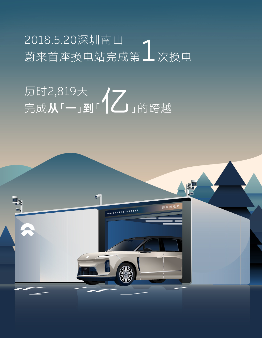 一亿次换电,每次如果提供300公里续航,可以行驶300亿公里,可以往返地球和太阳100次,光需要行走3.17个小时。