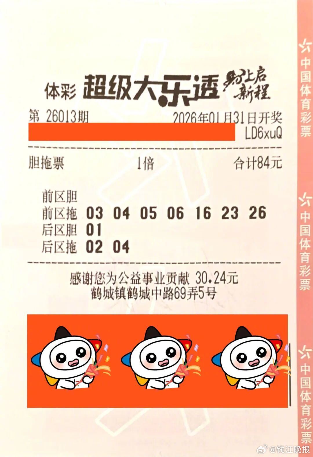 这位幸运儿陈先生(化姓),中的是1月31日开奖的体彩大乐透第26013期一等奖,单票奖金621万元。2月3日,陈先生与爱人一同现身浙江省体育彩票管理中心领取了这份幸运。