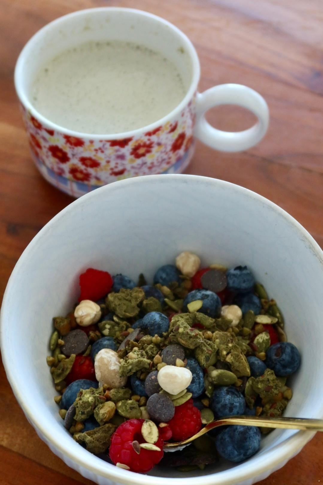 早午餐:抹茶鹰嘴豆坚果种籽脆黑巧榛子蓝莓🫐酸奶碗、焙茶椰奶拿铁晚餐:胡萝卜🥕羊肉丸子汤,加了红薯粉条和茼蒿,最近试了羊肉牛肉猪肉丸子做汤,感觉还是猪肉最适合,下次整个狮子头。猴父子的猪肉没有骚味,排骨也好吃
