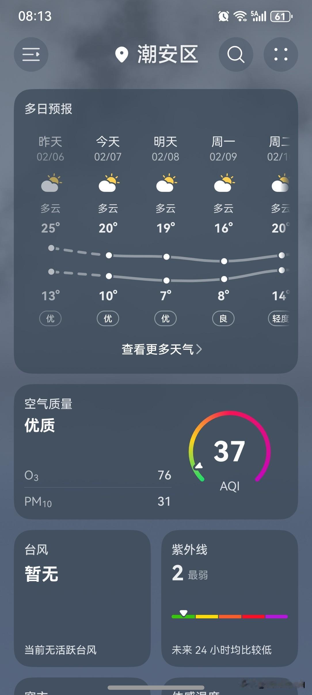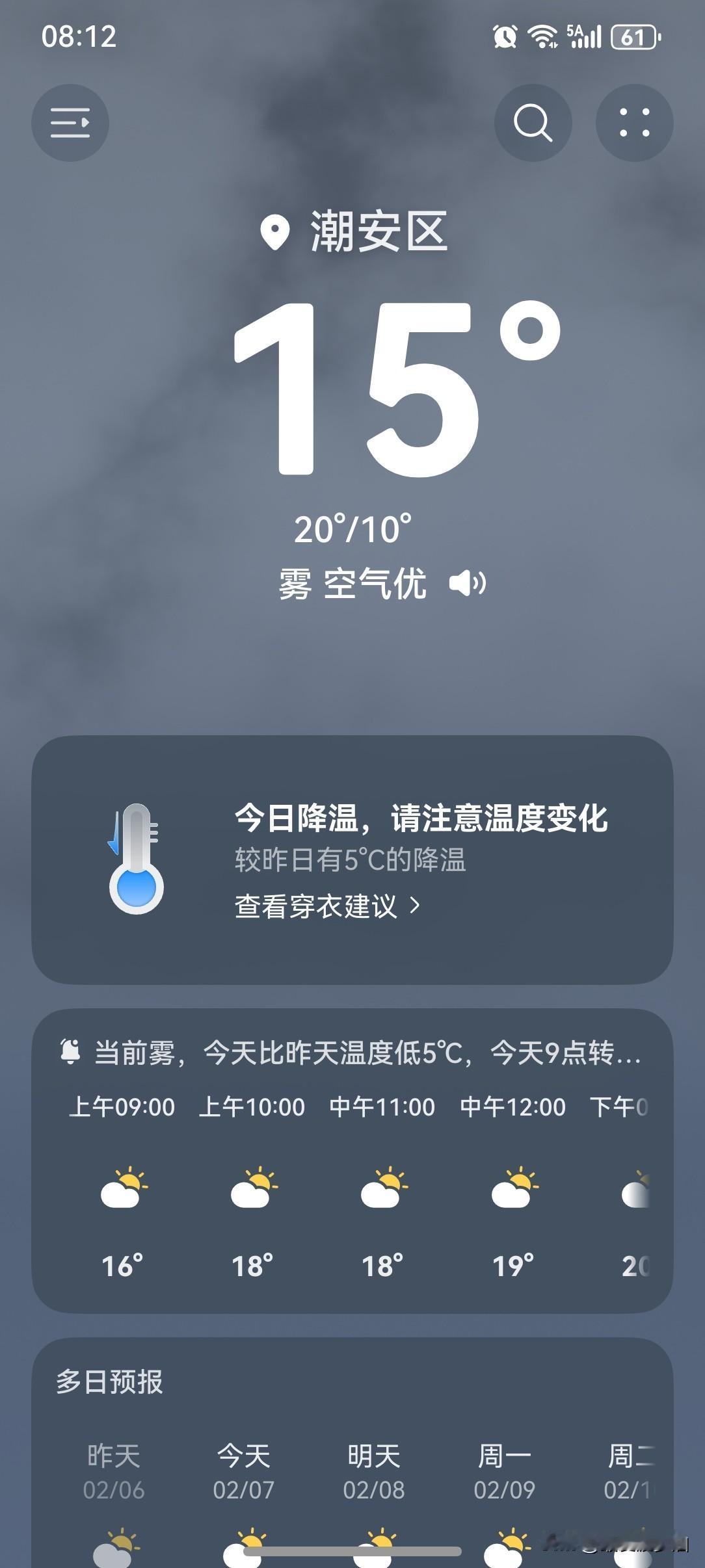 冷!冷!冷!速冻模式开启啦!冷空气夜袭广东,部分地区将有霜(冰)冻,周末迎来换季式降温! 今天(7日),冷空气继续南下影响广东,部分市县伴有小雨,气温继续下降,本次降温过程最低气温出现在8日或9日早晨,粤北部分市县有5°℃以下低温,高海拔山区1~3℃,局部有霜(冰)冻,广州过程最低气温9°℃左右,展望10日起气温逐渐回升。 天气变化节奏快,小伙伴们需要注意根据温度增减衣物,莫让流感病毒有机可乘! 今天(7日),潮州喜提一个多云天气,气温10~20℃,此刻气温15℃,体感温度13℃。 昨天夜里已经开始刮起了大风,冷空气如约而至!早上起来发现气温也下降了很多,大风一刮,体感更冷。 一起来看看今天的天空吧!今天的云量大增,天气画风与昨天相差甚远!早上是一丁点阳光也看不到了,不知道晚一点太阳还出来吗? 没有阳光的加持,阴天刮大风,只剩下阴冷了。 今天这样的天气,只能差评了哈! 如此天气!元芳,你怎么看? [我想静静][捂脸][笑哭][大笑][我想静静][捂脸][笑哭][大笑]