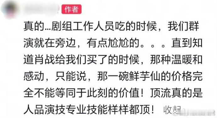 肖战的暖心藏在细节里,请客专门带上群演份额,直到知道肖战给我们买了的时候,群演的