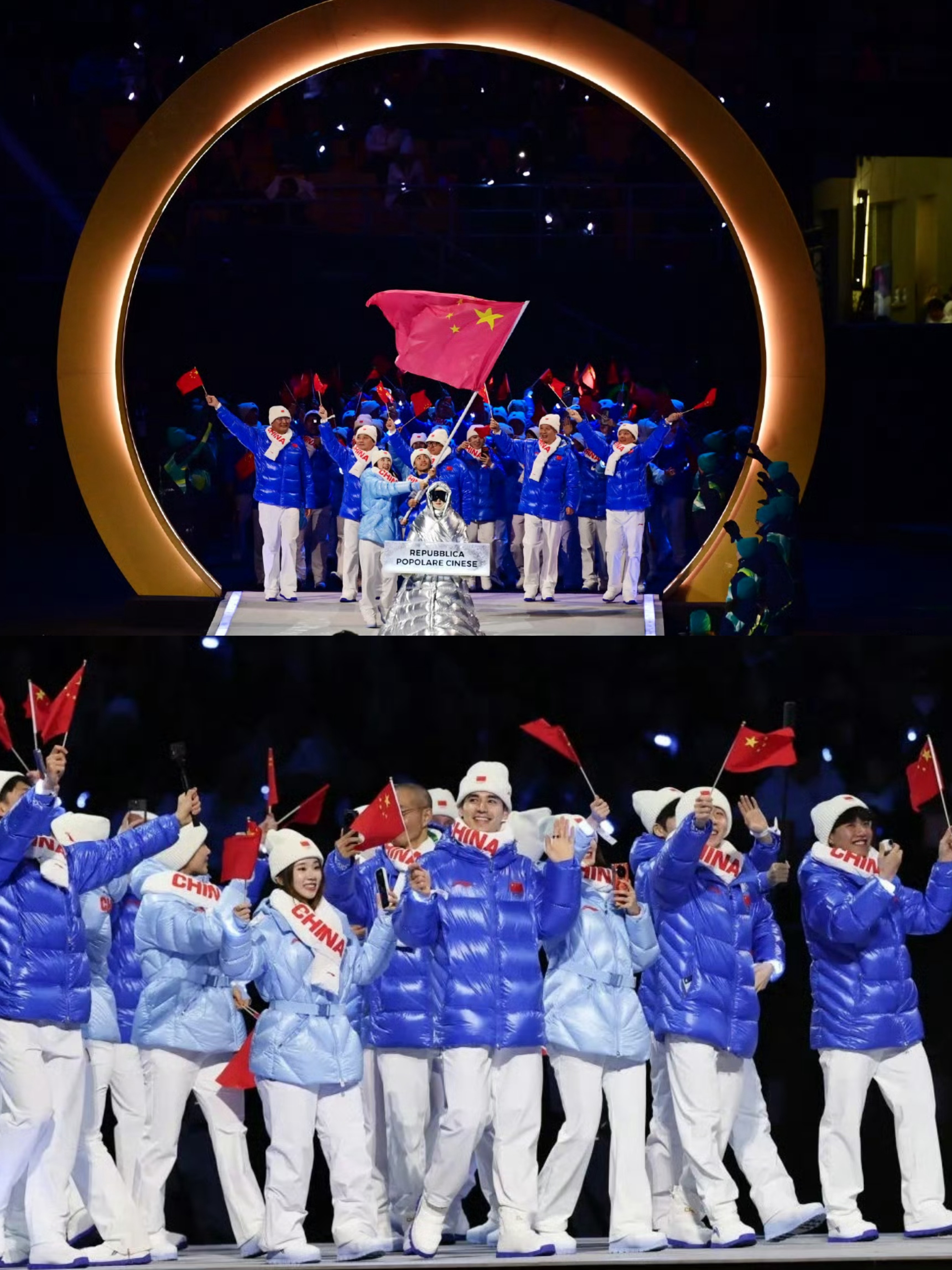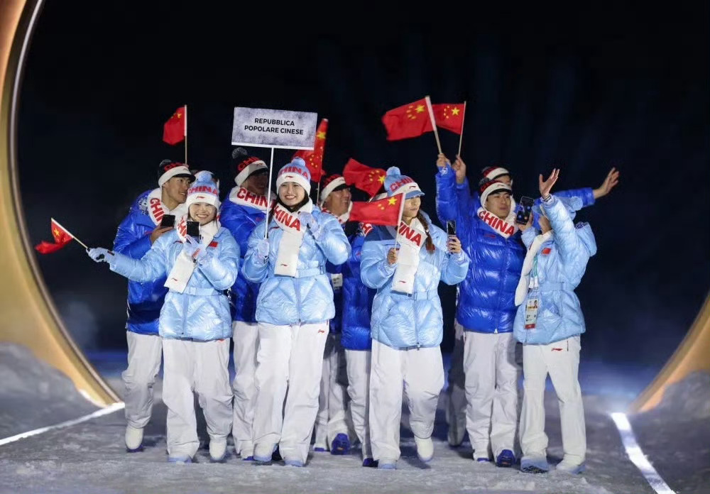 米兰冬奥会开幕式中国队登场!红蓝白三色队服简洁明亮,中国队加油!!