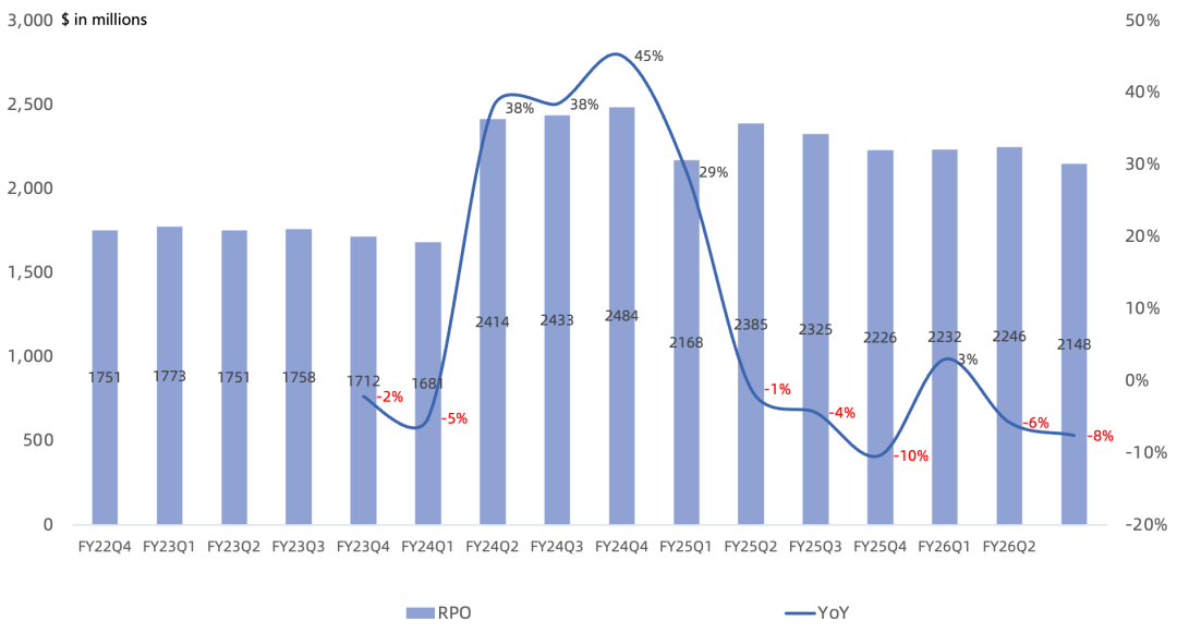 ACV16.2亿美元,同比增长28%;RPO21.5亿美元,同比下滑8%,连续2个季度下滑。