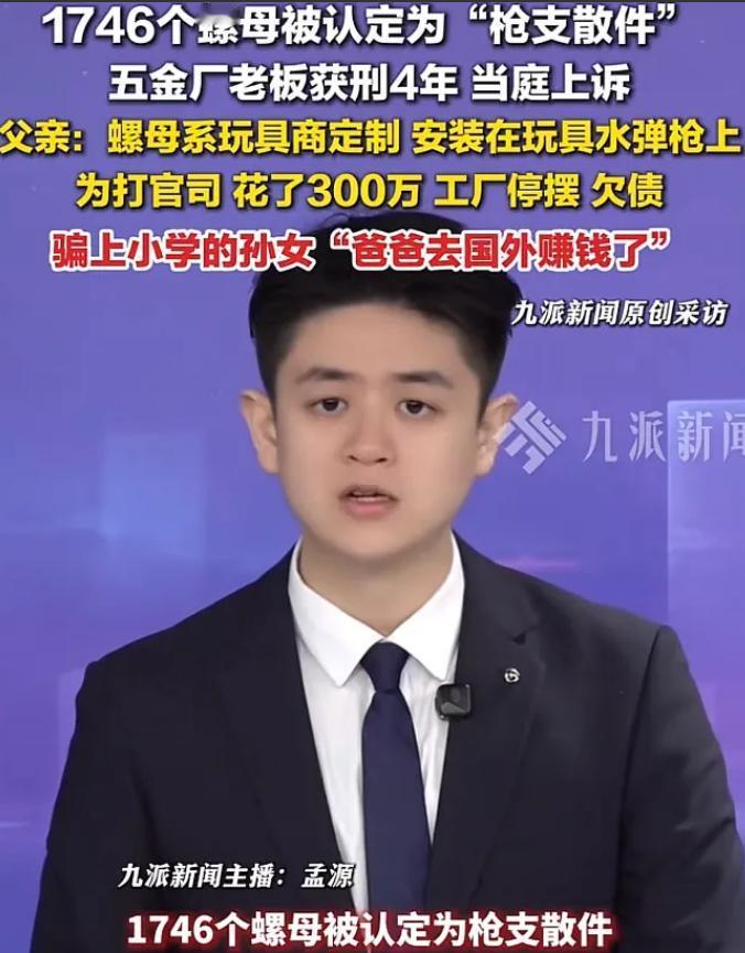 冤吗?广东珠海,男子经营一家五金场,民警从厂里搜出1746个螺母,这些螺母被认为被认定为枪支散件,男子涉嫌非法制造罪、买卖枪支罪被逮捕,男子大喊冤枉,一口咬定螺母是玩具商定制,用于安装在玩具水枪上,审判长当场拿着涉案螺母往同款螺具上拧,压根就没拧上去,男子最终被判了4年刑,男子提起上诉,可迟迟没等来二审,男子家为打官司已经花了300多万,工厂已经停工。 最近有个事,越看越让人揪心,不是什么惊天动地的大案,就是一堆普通的螺母,把一个好好的五金厂老板送进了监狱,还拖垮了一个经营了20多年的家庭。 被判刑的男子叫马晓强,1988年出生,他爸爸马建今年62岁,以前是国营五金厂的工人,零几年的时候,国营厂改制,马建就自己凑钱,在江苏南通平潮镇的村子里开了家五金厂,一干就是20多年。 厂子不大,180平米的砖砌厂房,屋顶吊着眼花的电扇,墙皮被常年的生产熏得发黑,看着和村里的普通民居没两样。 马晓强大学毕业后,就回家接了他爸爸的班,他学过数字化设备,把厂里的老机器都更新了,父子俩一个管生产调试,一个管老客户维护,日子过得不算大富大贵,但也安稳踏实。 厂里最多的时候雇了十几个工人,都是本村的亲戚和村民,大家靠这家厂子谋生。 转折点出在2022年6月的一天凌晨,天还没亮,马建正在厂里睡觉,就被民警叫醒了,随后厂子被彻底搜查,一批被马建叫做“铁头子”的螺母被带走,一共1977个。 后来才知道,其中1746个被认定成了“枪支散件”,马晓强当天就被民警带走了。 马晓强从被抓那天起就一直喊冤,他说这些螺母根本不是什么枪支配件,是2019年前后,常州一个叫陈勋的玩具商找他定制的,给了具体的数据,明确说用来装玩具水弹枪的。 除此之外,他也通过线上平台,把同款螺母卖给过其他客户,从来没和枪支打过交道。 直到2023年7月,案子被提起公诉,还建议判处十年三个月以上十一年以下的有期徒刑,马家一下子就慌了,拼尽全力找律师、搜集证据。 等到2025年一审开庭,有个细节让马家看到了希望,审判长当场拿了6个涉案螺母,往枪支同款螺具上拧,结果压根就没拧上去。 可谁也没想到,即便如此,一审还是判了马晓强4年有期徒刑,马晓强不服,当庭就提起了上诉,可这上诉之后,就一直没了消息,二审开庭的时间迟迟定不下来。 为了给马晓强打官司,马家前前后后花了300多万,家底彻底被掏空,经营了20多年的五金厂也彻底停了工,以前忙碌的车间,现在只剩下锈迹斑斑的机器,十几个工人也没了活计,各自散去。 马建这一年老得特别快,鬓角全是白发,连头发都变得稀少了。 他每天守着空荡荡的厂子,一边盼着二审的消息,一边还要应付孙女的追问,孙女还在上小学,总问他爸爸去哪了,他只能骗孩子,说爸爸去偏远的国家赚钱了,其实背地里,他常常一个人偷偷落泪。 说白了,这事最让人不解的就是,一个普通的五金螺母,怎么就成了枪支散件? 审判长当场都拧不上,说明它和所谓的枪支配件,规格根本不匹配,就算侦查人员说,是因为螺母没抛光、有毛刺,调整后能击发,可这样的配件,真的能算合格的枪支散件吗? 马晓强的律师也找过机构做过鉴定,说这就是普通的金属紧固构件,顶多算是枪械的辅助配件,不是主要部件,可这份鉴定意见,法院并没有采纳。 马建父子就是普通人,开个五金厂谋生,怎么也不会想到,自己按客户要求生产的玩具配件,会让自己身陷囹圄。 现在临近春节,别人家都是阖家团圆,马家却连个人影都凑不齐,马建还在日复一日地等着二审的消息,他只是想求一个公正,证明儿子的清白。