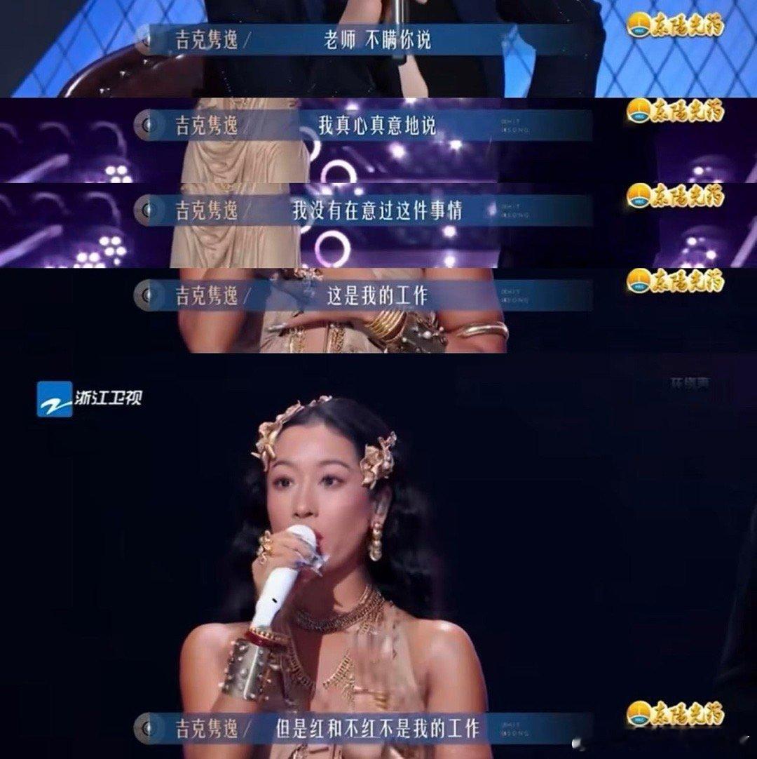 吉克隽逸 红和不红不是我的工作 吉克隽逸一句话道出歌手本质!“红和不红不是我的工作”,面对导师质疑,她选择忠于音乐而非流量。这份清醒与坚持,值得掌声。