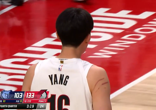 还剩3分钟开拓者末节领先30分,杨瀚森替补登场