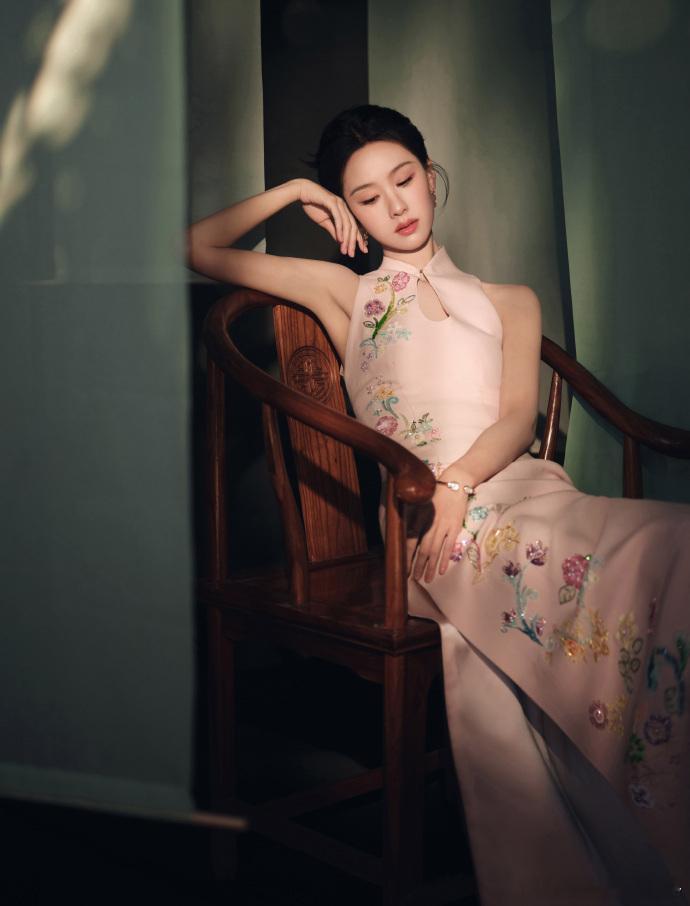 陈都灵网络视听盛典造型出图陈都灵粉色旗袍造型 嘟嘟陈都灵的粉旗袍团扇造型太契合了,网络视听盛典这套造型尽显东方美,旗袍勾勒窈窕身段超好看