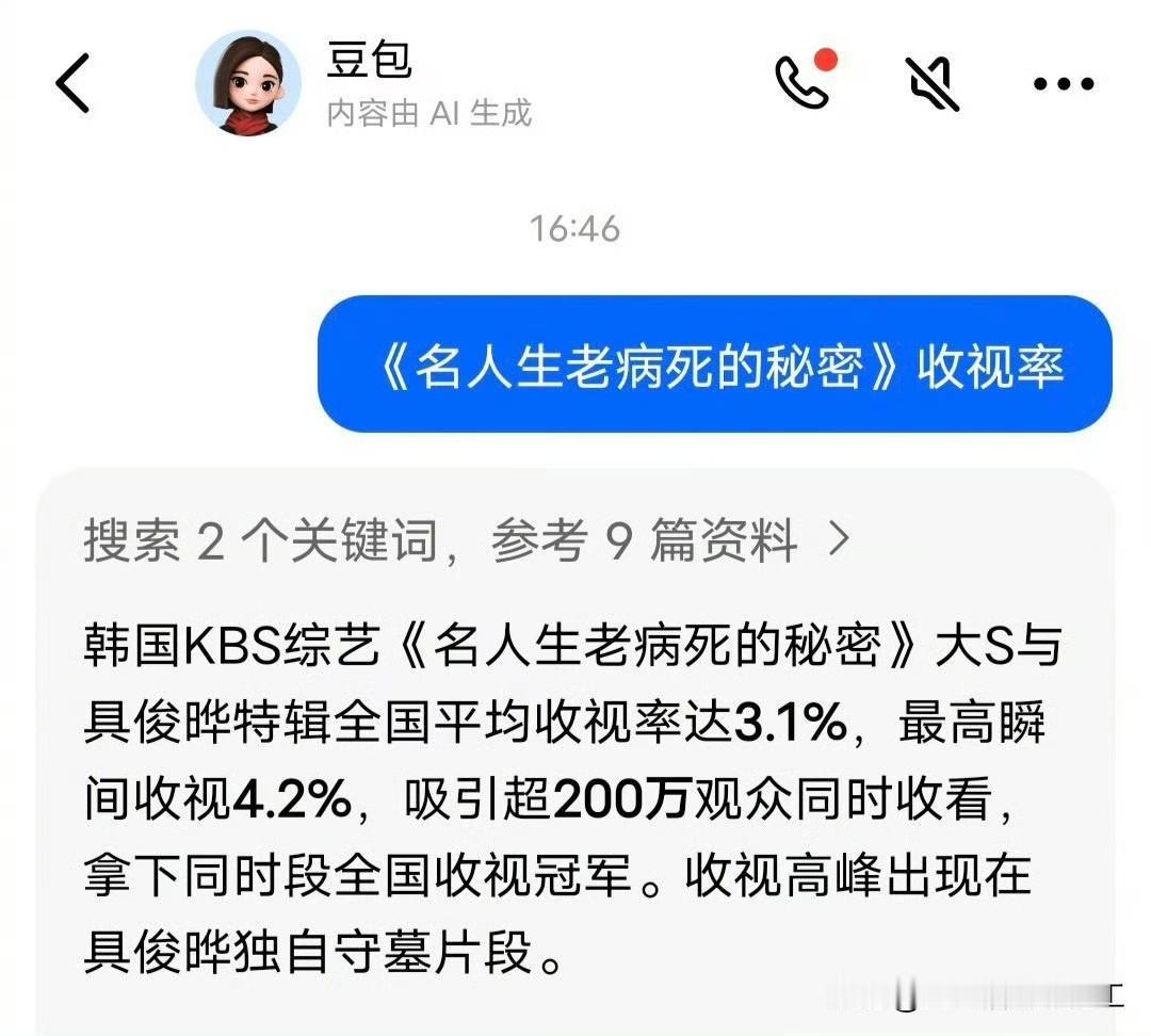 韩国KBS综艺节目《名人生老病死的秘密》大S与具俊晔特辑韩国平均收视率达3.1%,最高瞬间收视4.2%,吸引超200万观众同时收看,拿下同时段韩国收视冠军。收视高峰出现在具俊晔独自守墓片段。