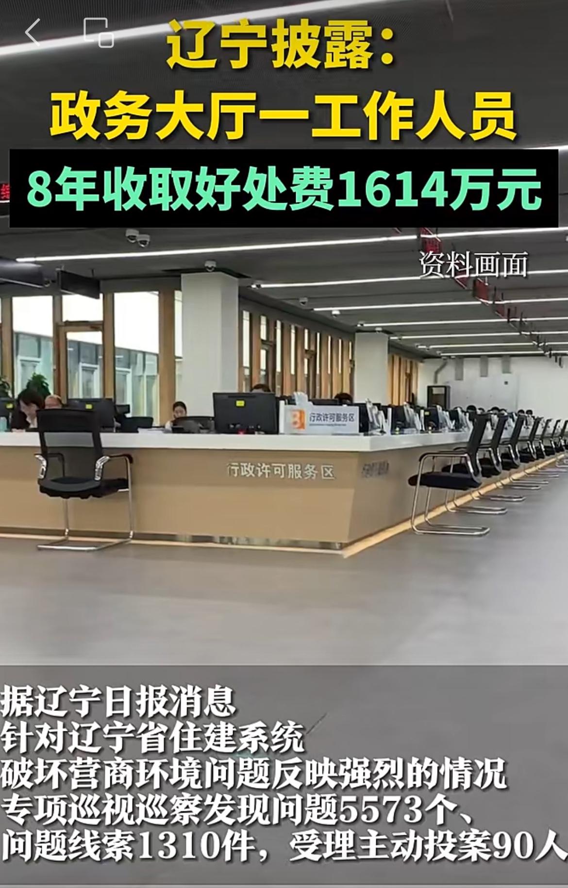 8年搞了1614万,辽宁一政务窗口成为一工作人员的印钞机,把小鬼难缠的古训诠释到了极致。这名工作人员捞钱的手段并不高明,他是辽宁住建部门的对外窗口,负责接收各种企业的申请、审批材料,权力很小,但是可以左右办事效率和进度,交钱就快点往上递材料,不交钱就找理由拖延,成为这个窗口办事的潜规则,很多企业为了加快进度,选择交钱。如此明目张胆吃拿卡要,持续8年,竟然没有任何企业投诉,上级更没有任何监督,实在匪夷所思。平均每天要进账8000块,超过这个工作人员一个月的工资。