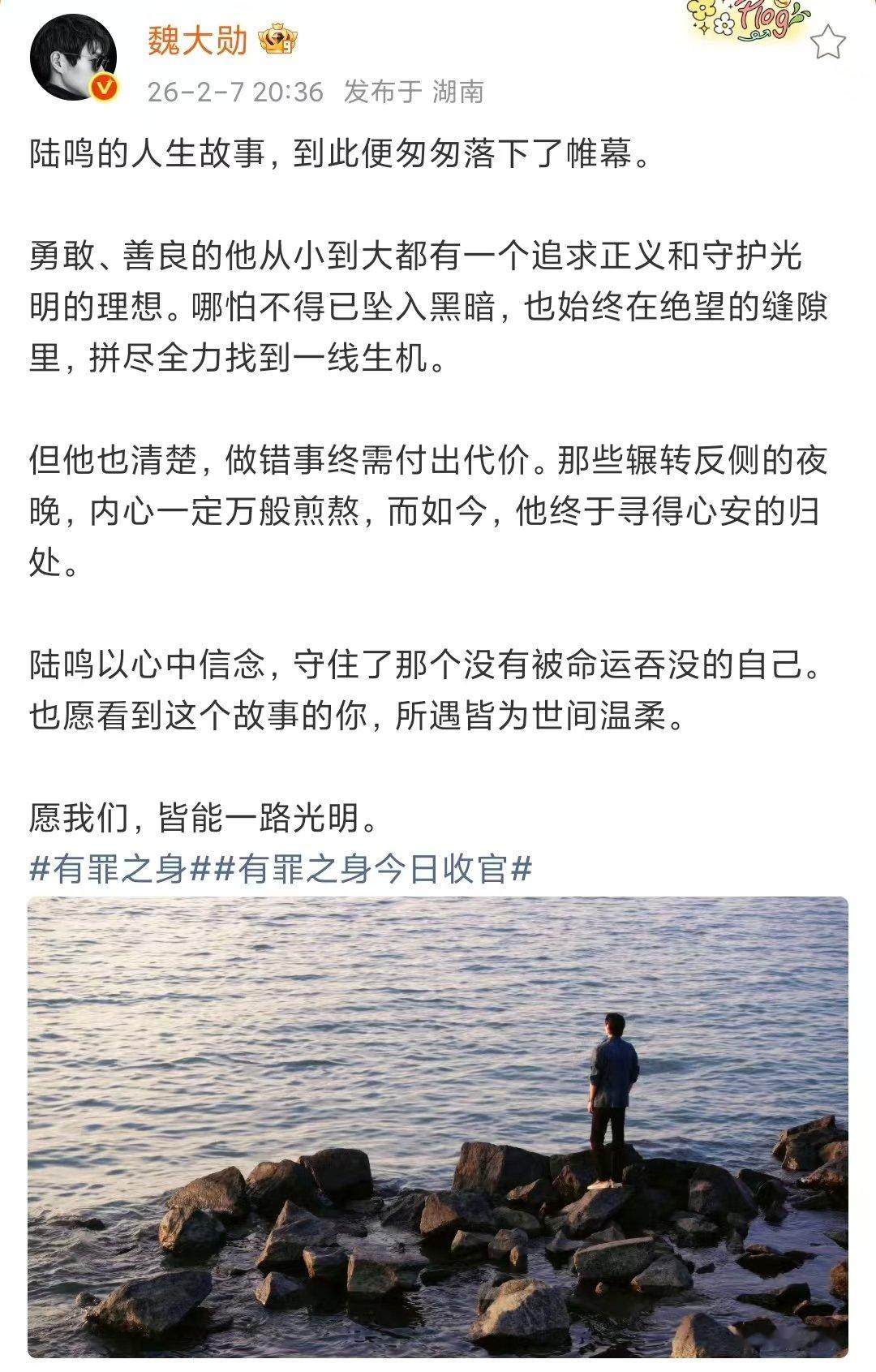 魏大勋陆鸣收官文魏大勋无罪之身收官魏大勋陆鸣收官文,期待再见面!