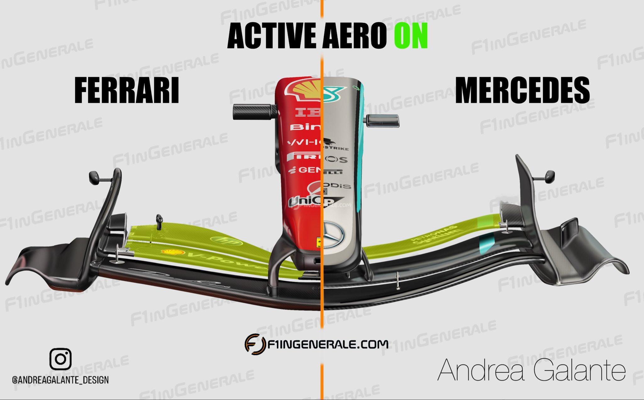 在巴塞罗那封闭测试中,梅赛德斯与阿斯顿马丁的可调前翼的设计与其他车队有些不同。梅赛德斯和阿斯顿马丁的赛车鼻锥是连接在前翼的第二层翼板上,而其他车队都是在第一层。这使得前翼打开时,大部分车队都是第二层和第三层翼板放平,但梅赛德斯和阿斯顿马丁只有第三层放平。