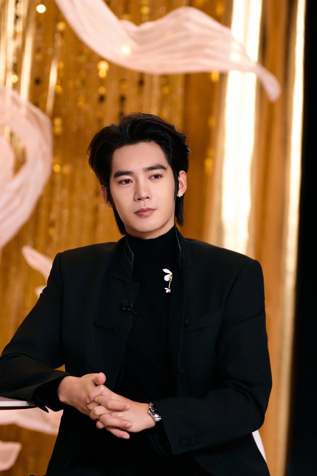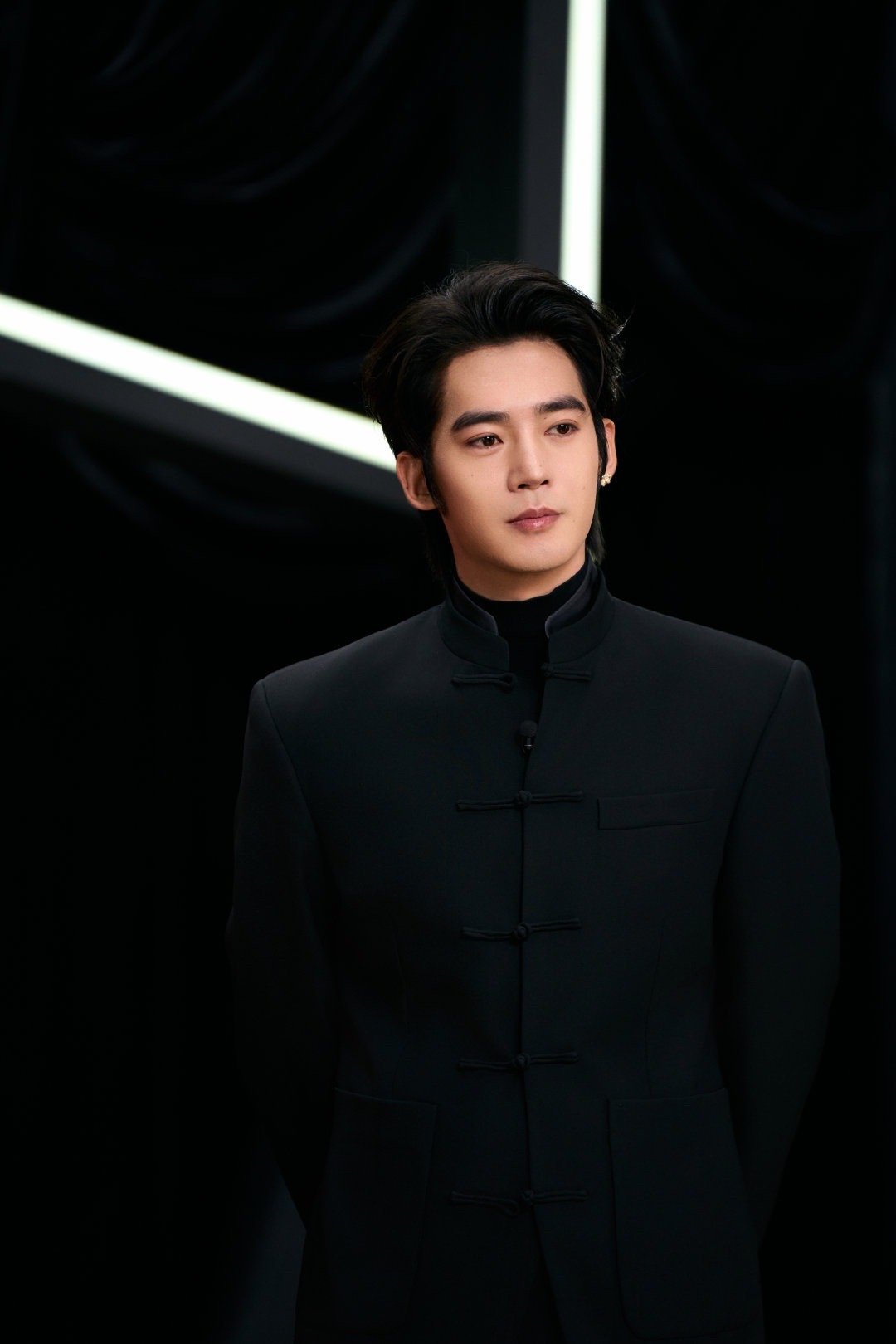 于适|今日品牌活动造型出图,身穿黑色盘扣立领新中式套装,佩戴浪琴腕表,all black透露出的周正之气,太帅啦!!!