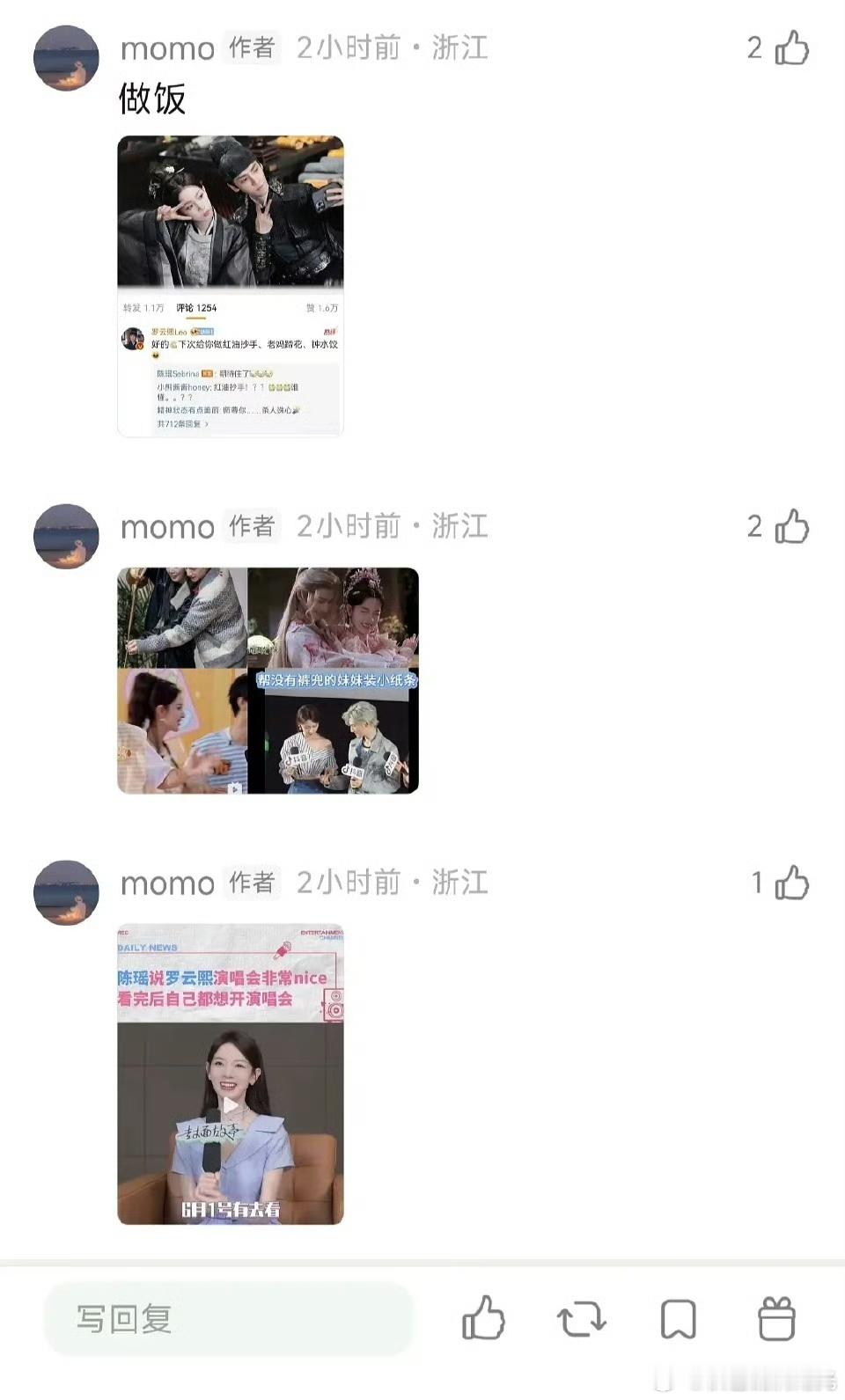 疑似罗云熙陈瑶恋爱曝罗云熙陈瑶恋情 有网友曝罗云熙和陈瑶疑似恋爱,包括同款手机壳、头像、衣服,罗云熙还探班,和女方闺蜜聚餐,女方送年夜饭、演唱会应援、生日祝福等,还有疑似罗云熙带陈瑶回老家小区的照片