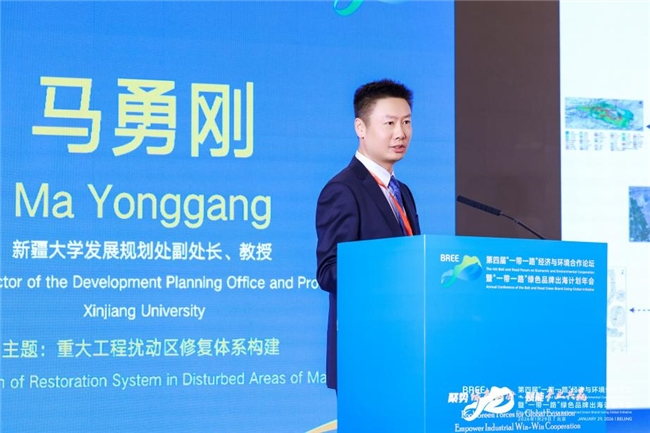 马勇刚系统介绍了针对矿山、排土场及粉煤灰堆场等重大工程扰动区的生态修复技术体系与实践案例。他重点分享了在新疆等干旱半干旱地区研发的节水植被恢复技术、本土生物资源利用及边坡修复装备。相关技术已实现节水90%,并成功推广应用,为丝路沿线类似区域的生态治理与绿色工程提供了可复制的技术方案。