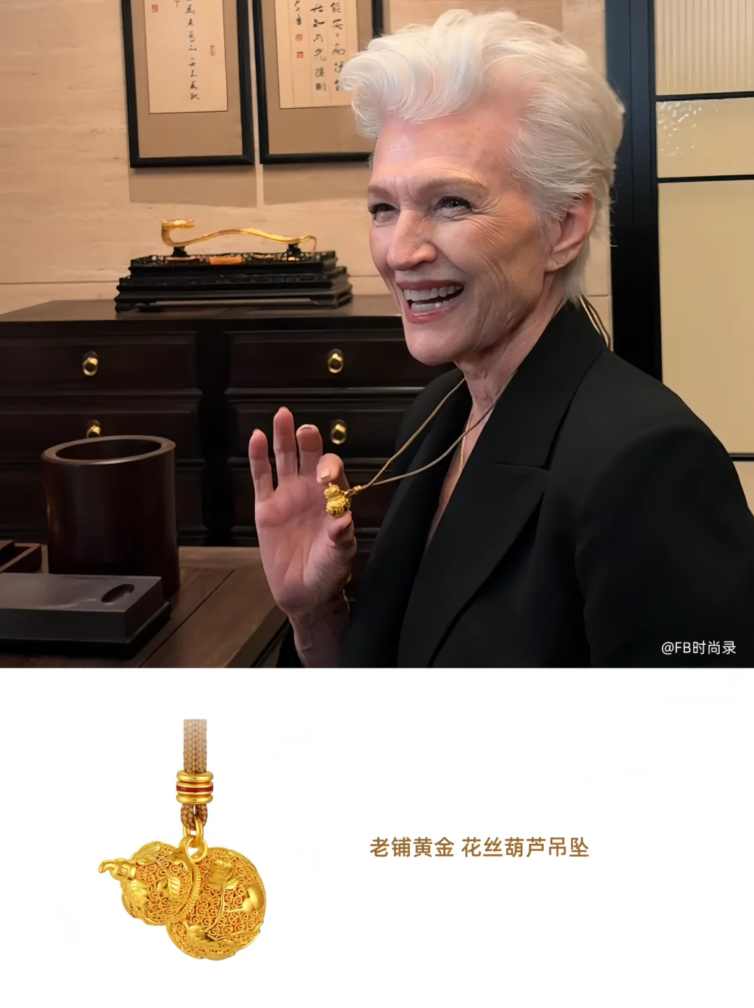 梅耶·马斯克的小红书最新发布了在老铺黄金挑选的新年礼物的Vlog,她在IG也分享了自己佩戴老铺葫芦吊坠的照片,东方经典与西方面孔的奇妙碰撞引起了不少海内外网友的关注。而这款花丝葫芦吊坠,也正是此前NBA巨星文班亚马佩戴过的同款。一个明显的信号正在浮现:为何不同领域的海外名人都开始佩戴老铺?