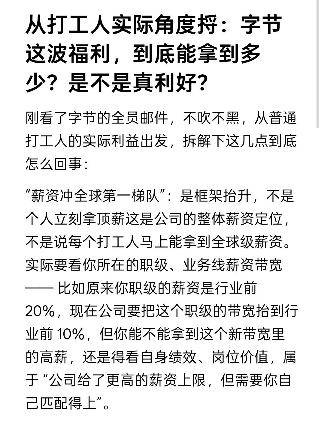 刚看了字节的全员邮件,不吹不黑,从普通打工人的实际利益出发,拆解下这几点到底怎么回事: