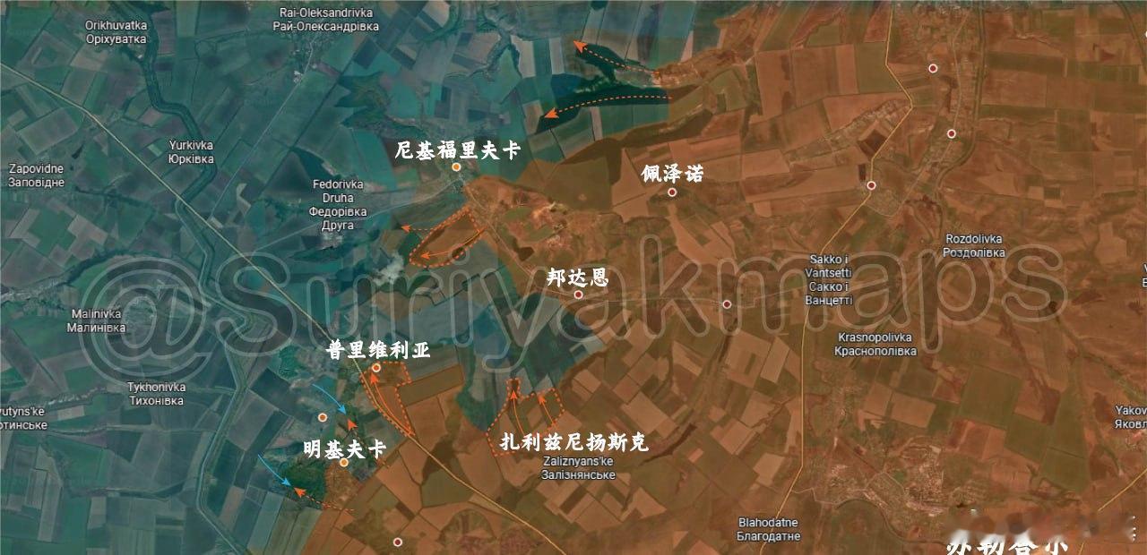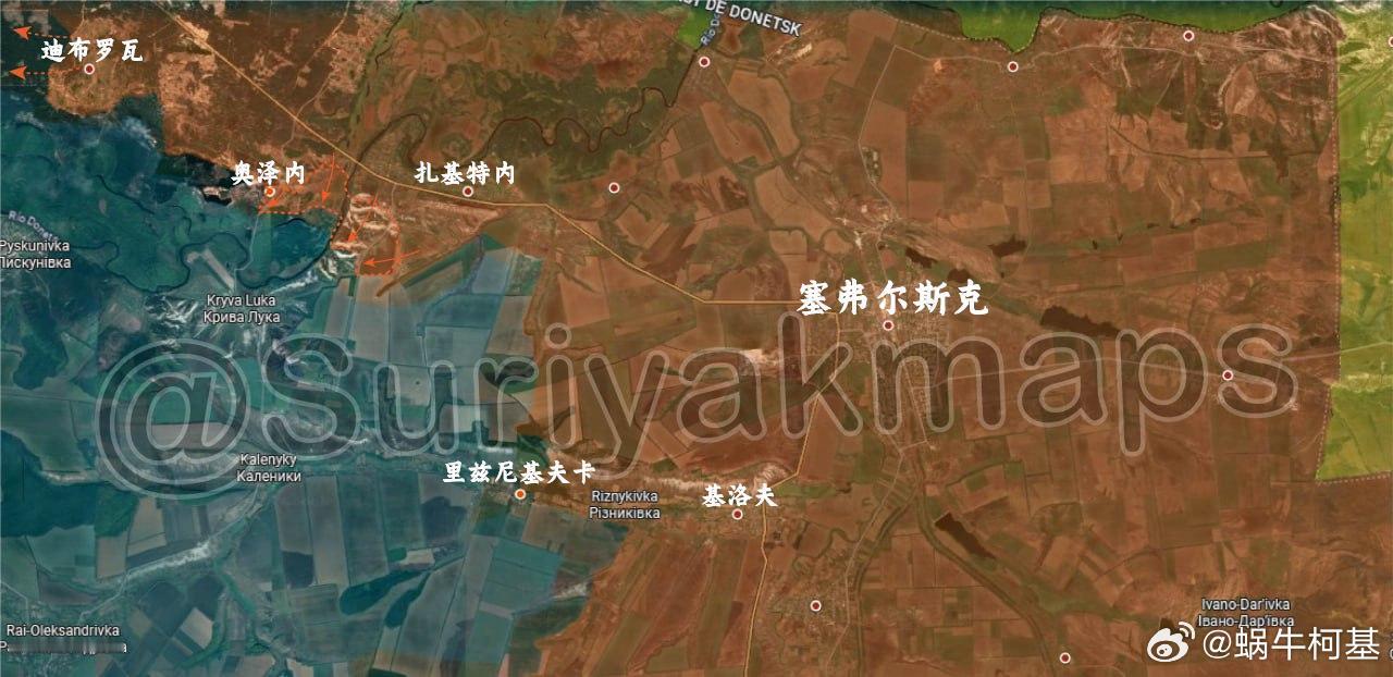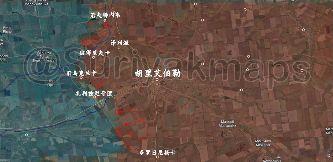 乌苏继续更新2.5和2.6俄乌局势6、红利曼:俄军在占领斯塔夫基后,继续巩固和推进。此外,马斯利亚基夫卡区已基本被俄军占领,而科穆纳尔区的战斗仍在继续。另一方面,乌克兰军队已收复德罗比舍韦地区以北的阵地,包括仓库。7、塞弗尔斯克:俄军控制了扎基特内以南的新阵地,并由此巩固了奥泽尔内的新阵地。此外,俄军继续扩大在迪布罗瓦以西的控制范围。8、克拉玛托尔斯克:俄军继续巩固普里维利亚和扎利兹尼扬斯克以北的阵地,同时在明基夫卡与乌克兰军队的战斗仍在继续。此外,俄军在巩固了尼基福里夫卡西南的阵地后,继续向费多里夫卡德鲁哈推进,并开始向佩泽诺以北的阵地发起进攻。9、顿河君士坦丁罗夫卡:俄军在普雷德泰奇涅以北夺取了新的阵地。此外,俄军在斯捷潘尼夫卡取得进展,并正逼近多夫哈巴尔卡。同时俄军已渗透到切尔沃内。10、多布罗皮利亚:俄军继续从苏赫茨克向西扩张,夺取了铁路线,从而得以开始向比利茨克以南发起进攻。11、胡里艾伯勒:俄军控制了南边铁路沿线的大片阵地。此外,俄军进入扎利兹尼奇涅后,对其发起猛烈进攻,并在若夫特内韦附近推进,逐步将战线向西转移至铁路沿线。来源:suriyakmaps俄乌局势新进展特朗普回应是否抓捕普京普京称已无兴趣等乌方从占领区撤出