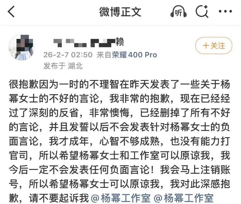 各家学着点,告小粉不要告那种有公司托底的zhi粉,这人前天造谣杨幂,今天迅速x🐀滑轨了。