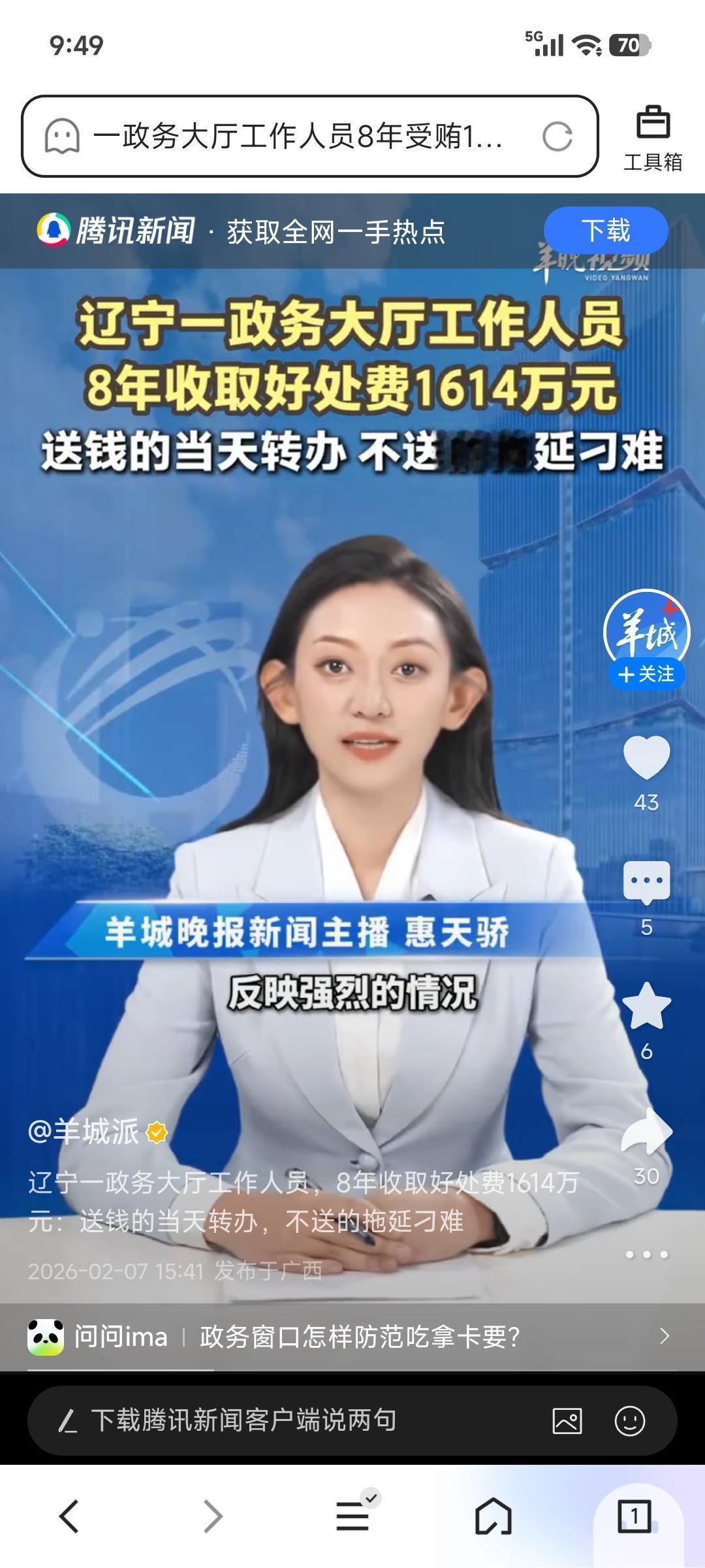 辽宁这事儿真让人惊掉下巴!省住建厅驻政务大厅的工作人员王某某,8年收了1614万好处费,平均每天敛财约5500元,把公共服务窗口变成了“收费站”。“送钱当天办、不送钱就拖”,办事企业和群众可遭了殃。 这事儿是2025年10月到2026年1月巡视时发现的。当时全省住建系统破坏营商环境问题严重,巡视巡察揪出问题5573个、线索1310件,还有90人主动投案。希望这样的腐败行为能越来越少,政务服务能真正为人民服务。