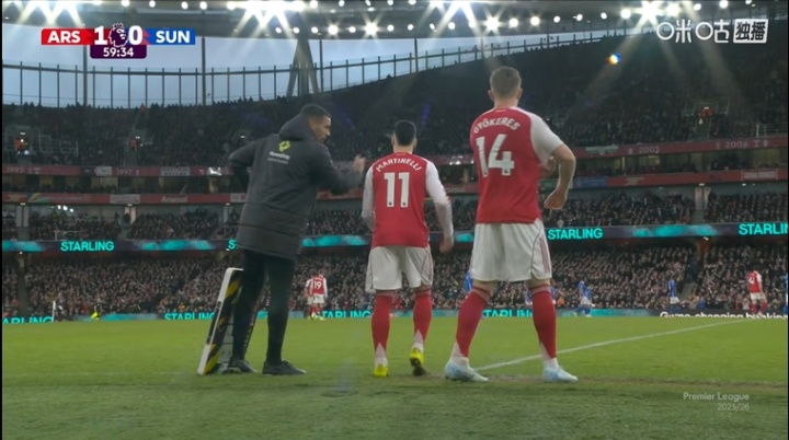 早早换人!阿森纳第60分钟前场连换两人,约克雷斯、马丁内利登场