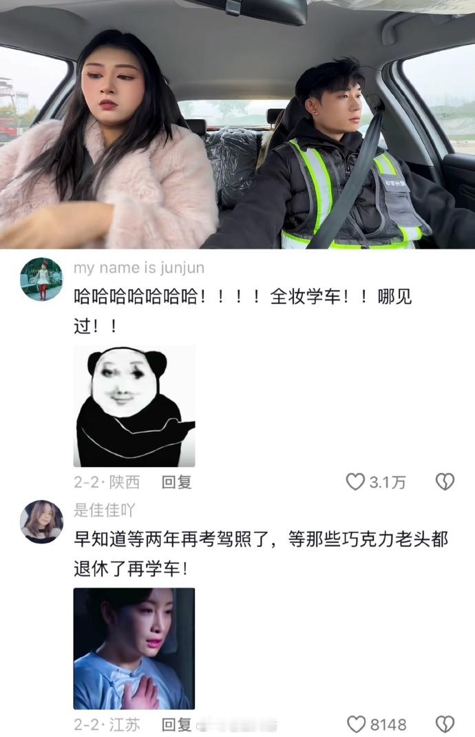 用户10xxx16 1 2026-02-08 14:34 我夏天学车,从头包到脚,包括手指头,教练一直不知道我长啥样,科二考试那天全妆连衣裙,教练气蒙了,说你这样考试啊,哈哈,所有科目一把过,科三第一个考的,下车的时候考官说,今天都像你这样顺利又快就好了,我就能早点下班了