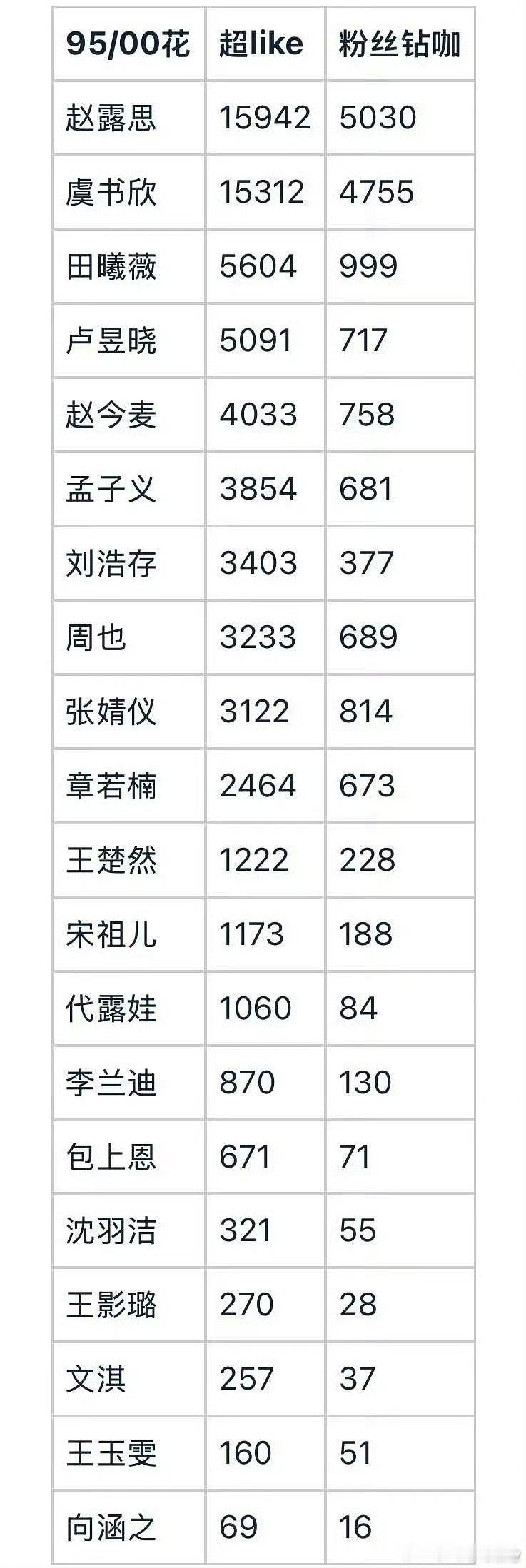 95-00热门🌸超like汇总来了,赵露思全内娱排名第一,年冠爆剧🌸就是🐮