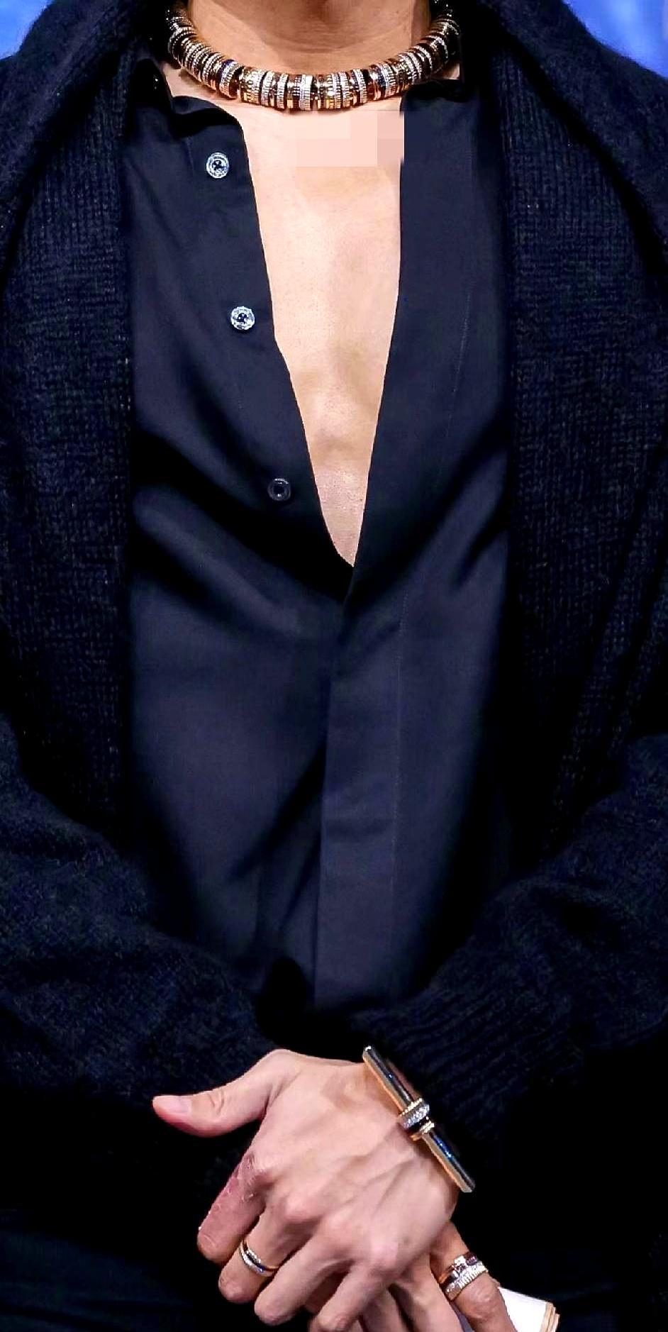 675万的宝格丽蛇骨链,压不住他45岁的油光和皱纹。 金发染了,网纱透视衣穿了,脚下还踩着一双想垫到180的厚底鞋。镜头拉近,全是戏。 可转头,演唱会门票秒空,零下几度穿着单衣走红毯,拍打戏手上的茧子比谁都厚。 所以男人到了中年,是服老更体面,还是不服输才算体面?