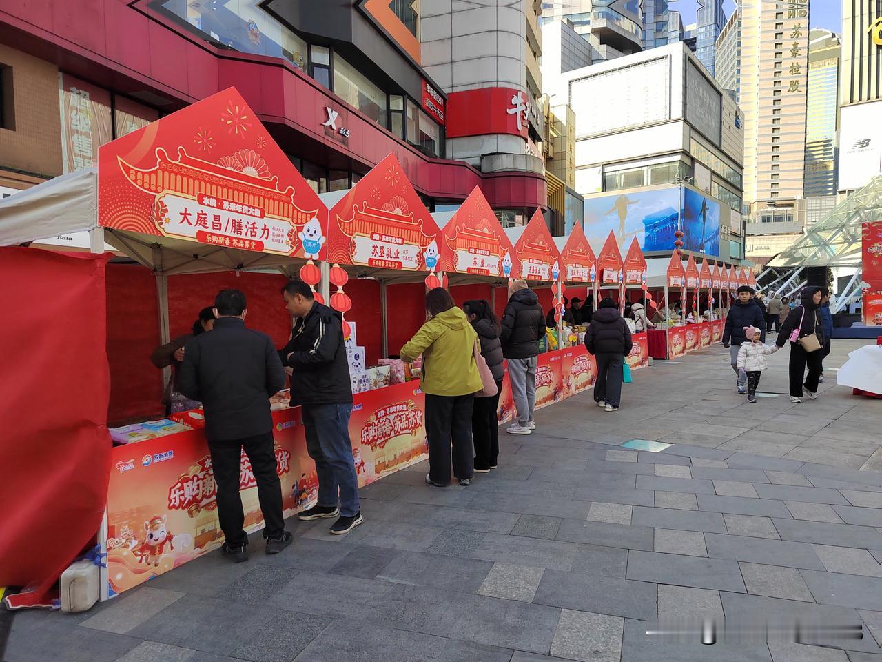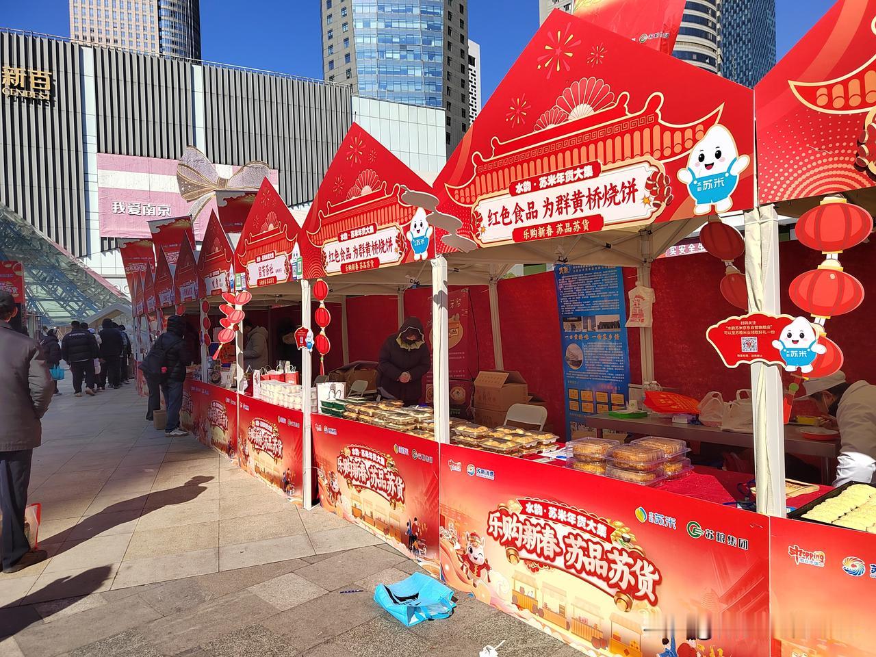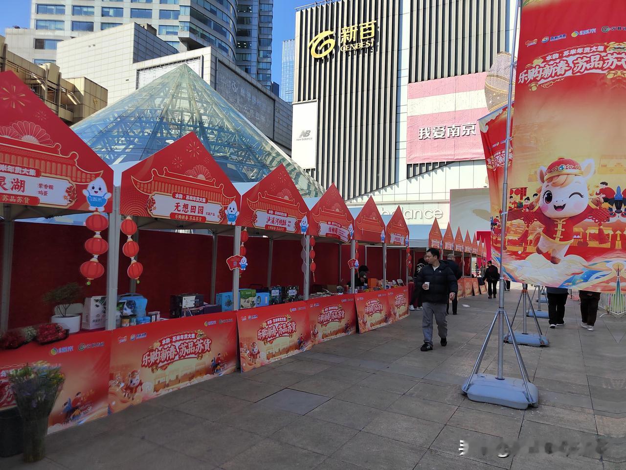 今天南京市晴朗相伴,气温低迷,寒冷刺骨。上午按约定时间去牙博士口腔进行种植牙定期检查,并修补了两个楔缺的牙齿。 顺便来到新街口逛一逛,莱迪广场正办举办水韵.苏米年货大集,现场供应的年货以苏粮集团粮油产品为主,现场购物还可以参加抽奖活动。 新街口莱迪广场周边还布置了不少彩灯和马年饰物,烘托出浓浓的节日氛围。