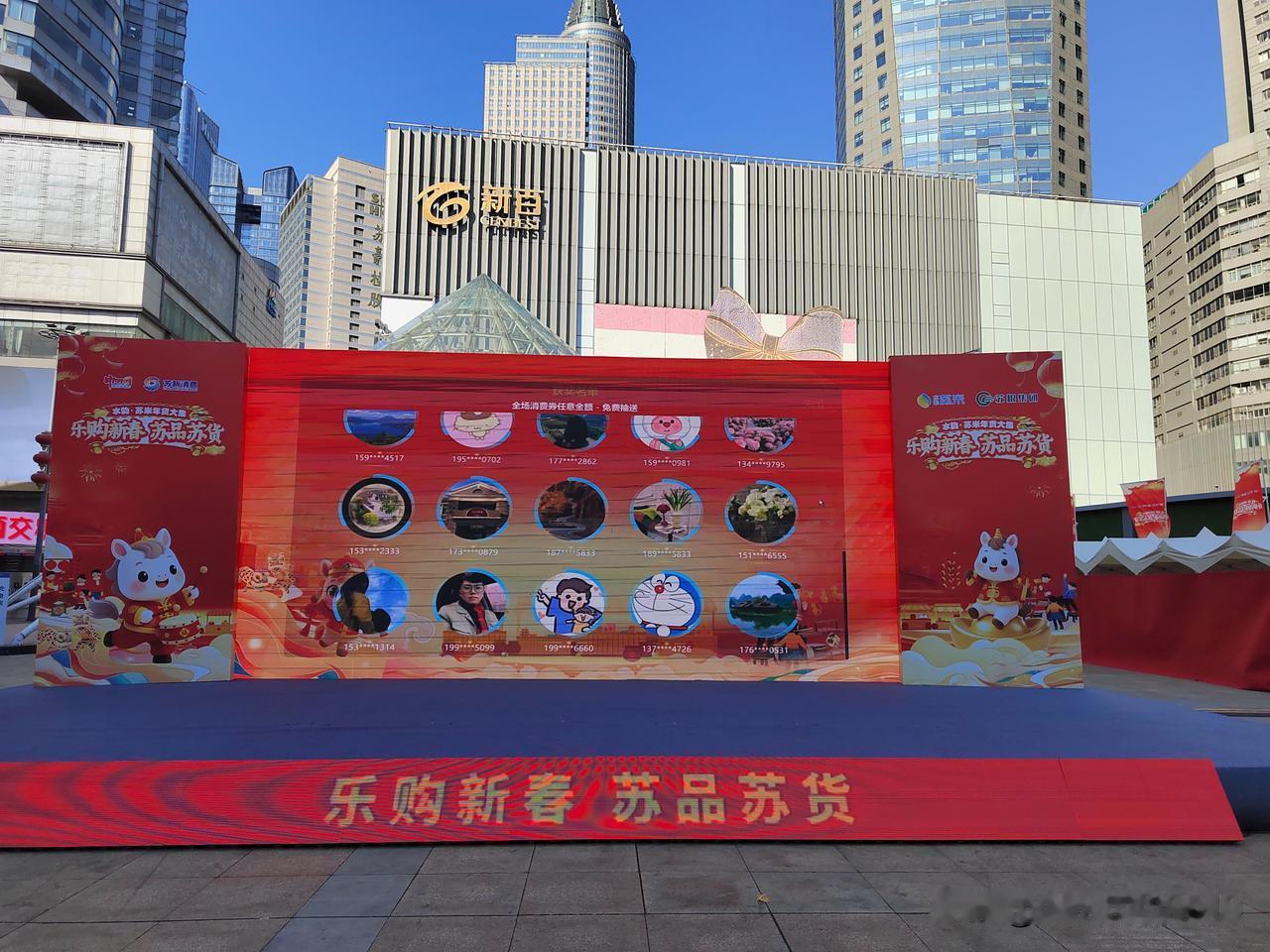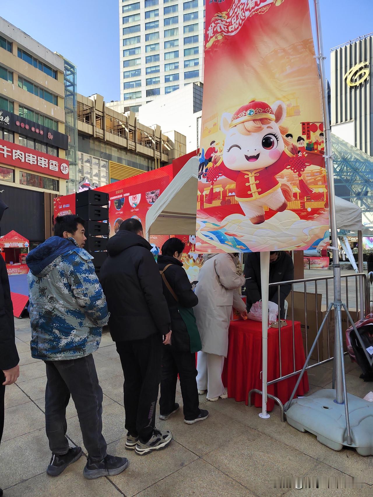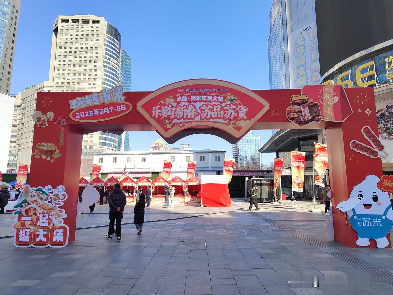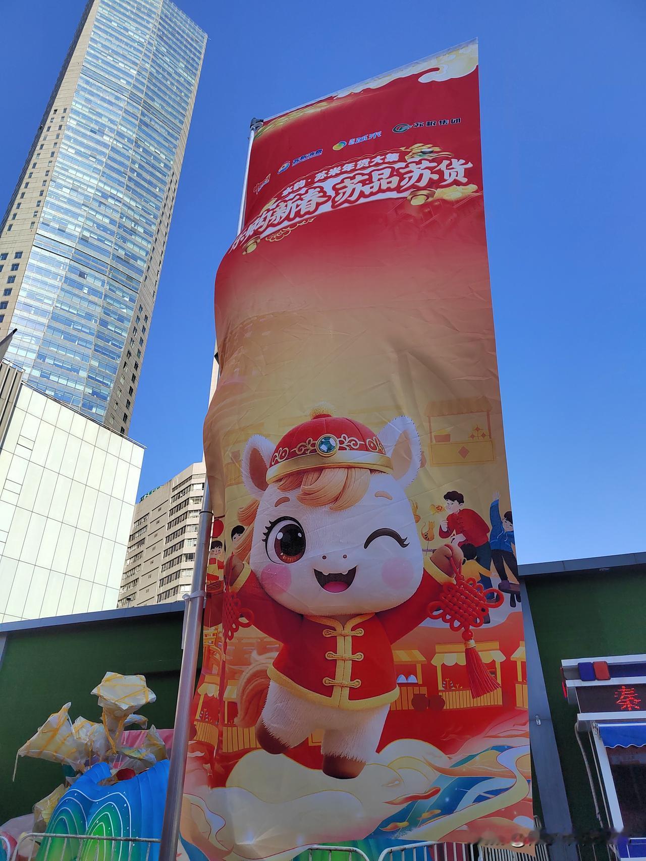 今天南京市晴朗相伴,气温低迷,寒冷刺骨。上午按约定时间去牙博士口腔进行种植牙定期检查,并修补了两个楔缺的牙齿。 顺便来到新街口逛一逛,莱迪广场正办举办水韵.苏米年货大集,现场供应的年货以苏粮集团粮油产品为主,现场购物还可以参加抽奖活动。 新街口莱迪广场周边还布置了不少彩灯和马年饰物,烘托出浓浓的节日氛围。