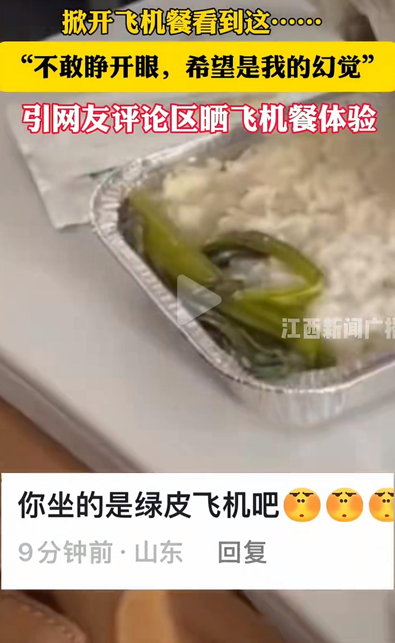 花几千块买张机票,结果飞机餐打开就一根青菜、一碗白饭,真的越想越气。 山东那位姑娘掀开餐盒的时候,我都能想象她当时愣住的样子,盯着看半天不敢信,还自己安慰自己是不是眼花了,换谁都觉得这也太敷衍了吧。本来以为就她倒霉,结果评论区全是同款经历,有人牛肉饭翻到底只有青豆和午餐肉,有人正餐直接换成一碗白粥、硬邦邦的面包,就连公务舱都离谱,面包薯片凑一顿,甚至几颗花生米就算正餐,落差大到离谱。 我们真不是挑嘴,也知道高空环境干、噪音大,味觉会变,预制菜复热口感差,这些都能理解。可理解归理解,不能拿这个当借口,直接把餐食缩到只剩一根菜吧。 这几年航司不容易,大家都看在眼里,成本紧、能省则省,人均餐食也就十几二十块,短途精简我们也认,但再省也不能没底线啊。花了钱,要的不是多好的饭菜,就是一份基本的尊重,明明白白的标准,别让人打开餐盒一肚子火。 你看川航、海航,一点点小用心就特别圈粉。与其偷偷缩水,不如直接把餐标写清楚,短途是点心还是正餐,提前标明白,大家提前知情心里还好受一点。 说到底,一根青菜的飞机餐,缩的是分量,寒的是人心。生意再难,服务的底线不能丢,别让一次敷衍,耗光乘客所有信任。国航头等舱餐食 难吃的飞机餐 飞机上的饭