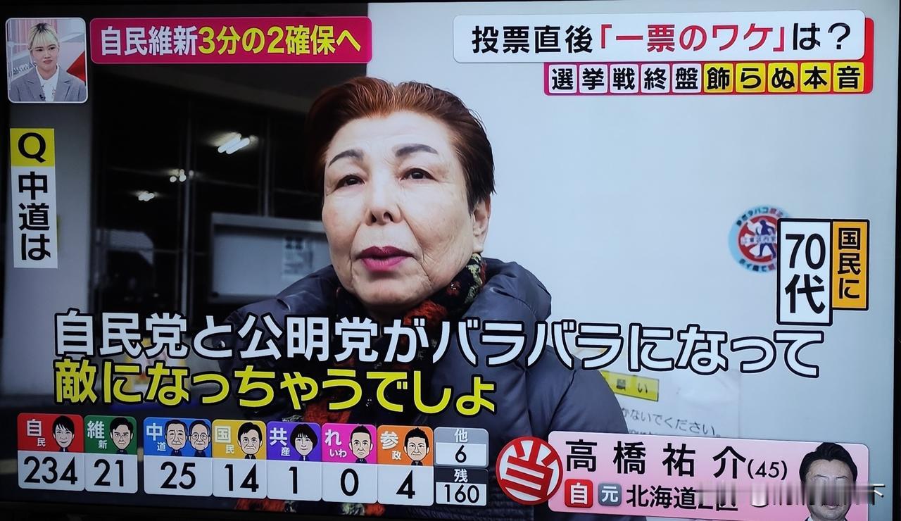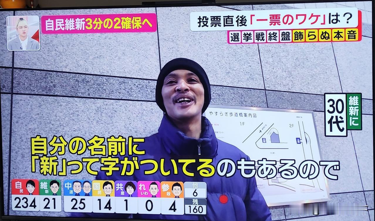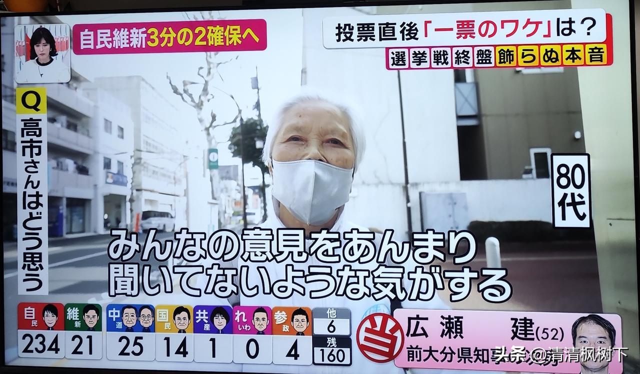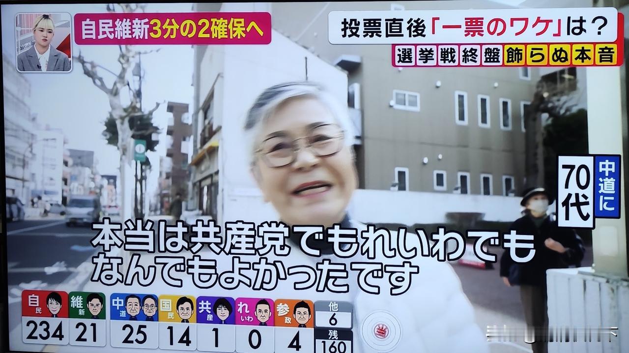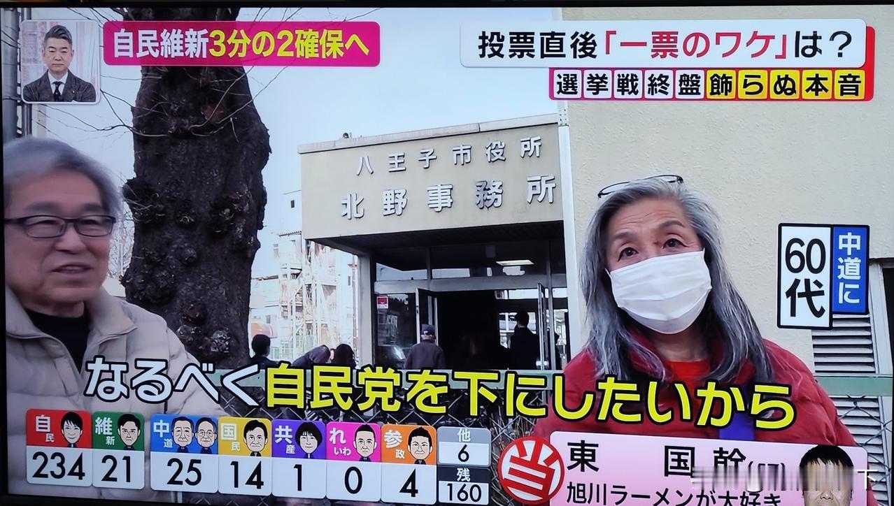 今天日本众议院大选,没有悬念,自民党大胜。 看看选民的投票考虑方法,真是一言难尽啊! 有20多岁的年轻人说,投票给自民党,是因为她很会说话,还会敲鼓。 有十几岁的年轻人(日本18岁开始有投票权)说她出生的时候就是自民党执政,感觉比较稳定。她说的时候,她妈妈在旁边不住点头。 还有中年人选择日本维新会只是因为他自己的名字里有“新”字。 有一位老太太说很讨厌高市,因为她完全不听别人的意见,只说自己的话。但是最后,她还是投了自民党,因为其他人都不行。 有一位老人投了中道,因为他认为高市很危险,他很讨厌右翼。 另有一位80多岁的老人说投给了自民党,他说现在跟中国关系这么差,希望能尽快改善关系,自己能在世界和平中离开这个世界。 还有一些人说只要不是自民党,谁都行。她自己投给了共产党。 感觉公明党和立宪民主党合并成中道以后,大家反而不信任他们了。 这样几十年的政党轻易改名,只会丢掉了自己的一贯性。坚持自己的路线才是最重要的啊! 日本会走向何方,wait and see!