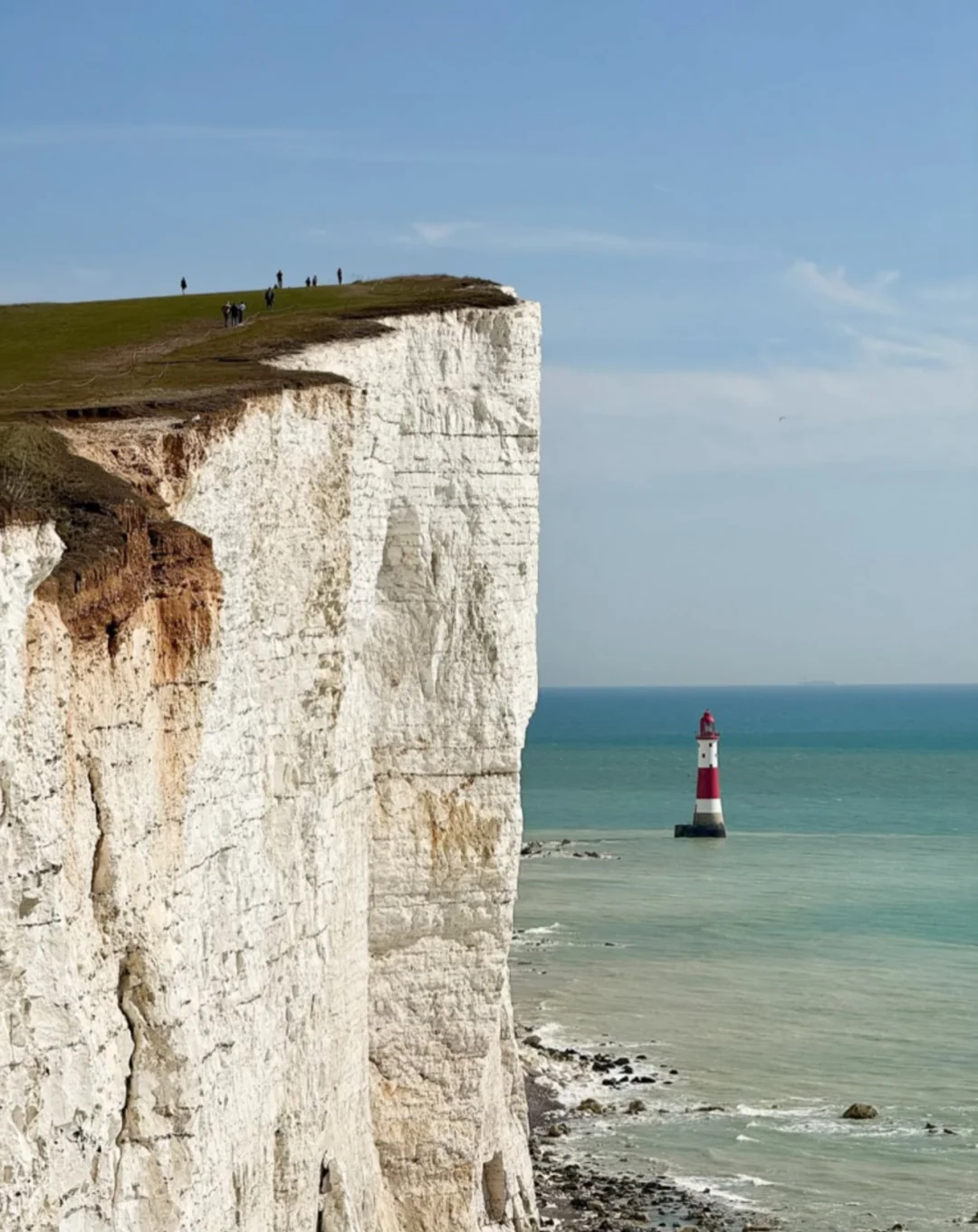 ✅ 拍「红白灯塔 + 白崖 + 大海」同框:Beachy Head 是七姐妹白崖的西起点