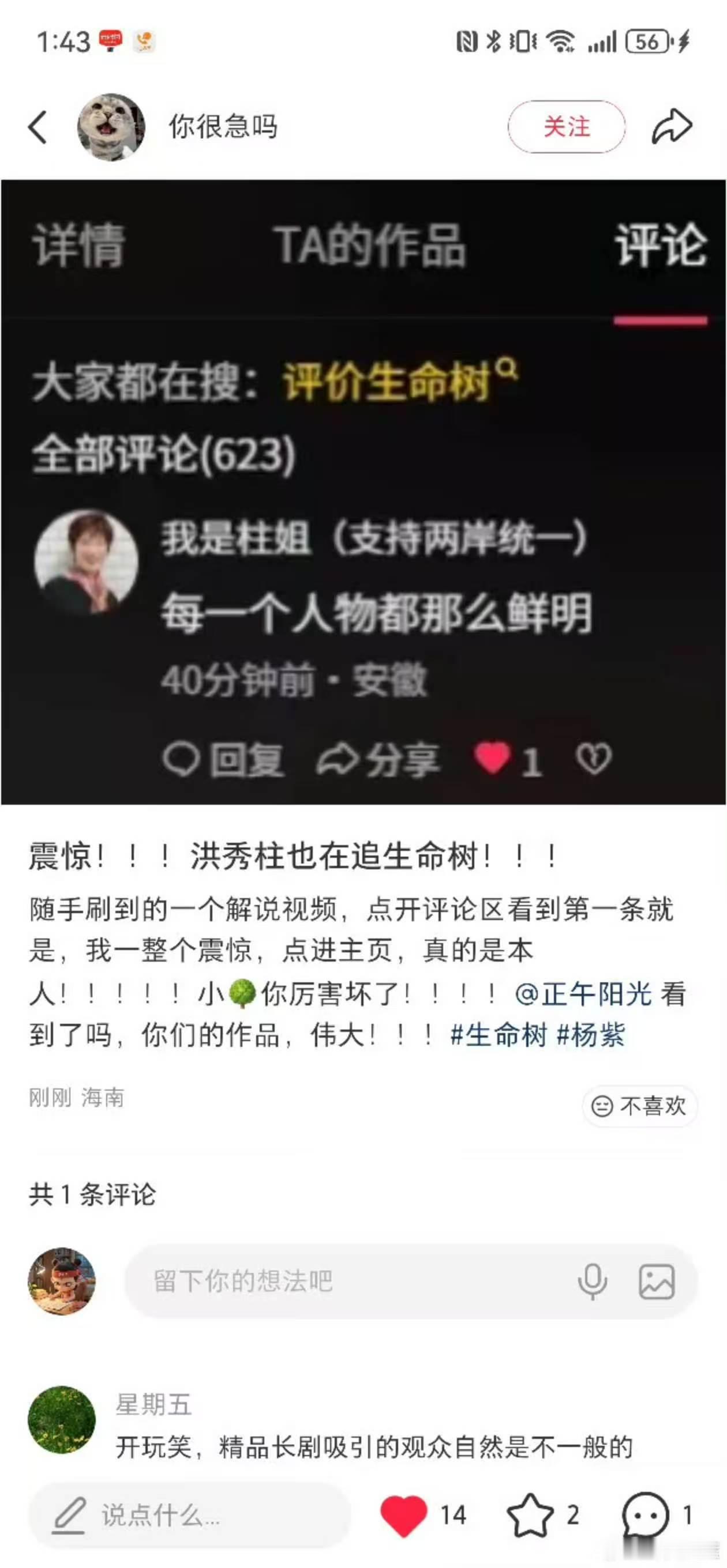 杨紫说拍生命树很自豪震惊,洪秀柱也在追生命树
