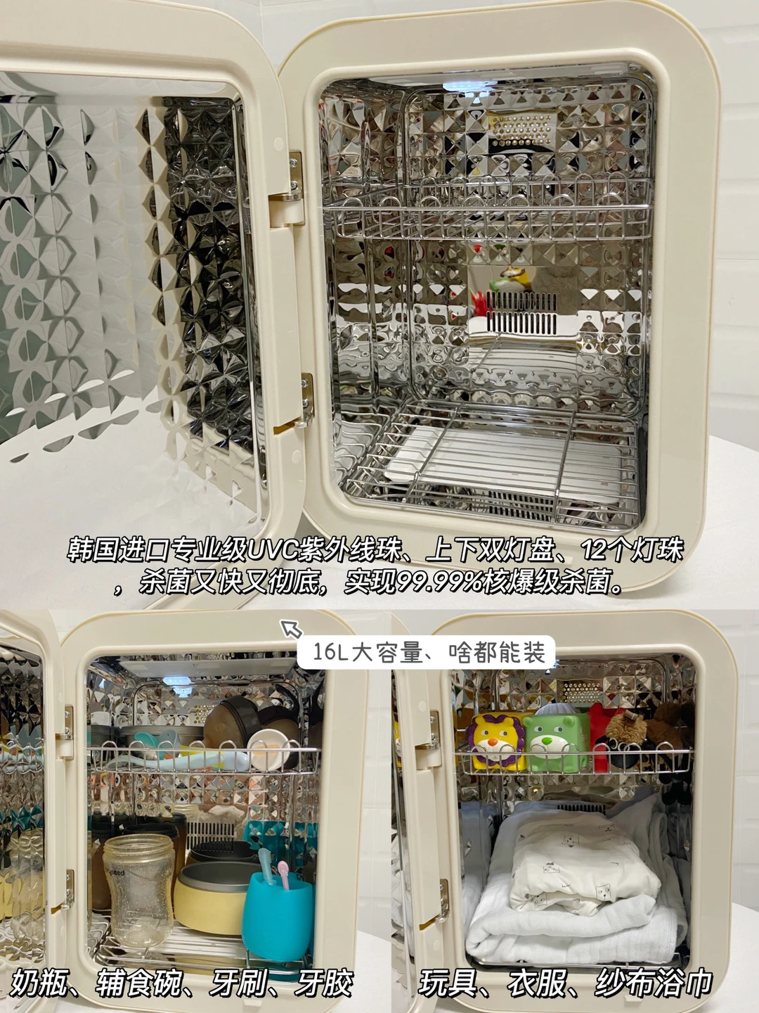 🌟我选的可优比消毒柜,一共有12颗进口灯珠,上下各6颗,能无死角消毒到每个角落。而且是消毒+烘干+保管一体的,可以随用随取,操作也很简单,家里老人也能直接用。16L的容量很友好,宝宝吃辅食后餐具也都可以放里面。颜值超级高,奶奶的、放在家里超级惊艳,价格也才几百块,高性价比、颜值和实力并存。不知道选什么消毒柜的,可以闭眼入可优比消毒柜哦。