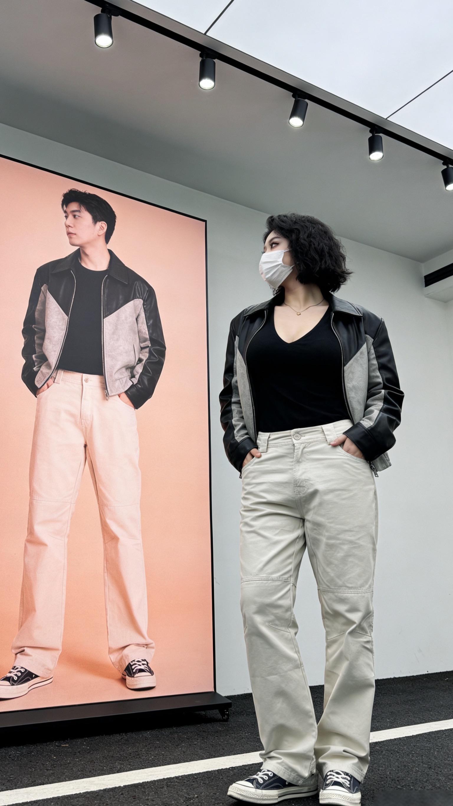 弯刀立裁拼接工装裤四季机能风可调节直筒裤简约透气休闲长裤