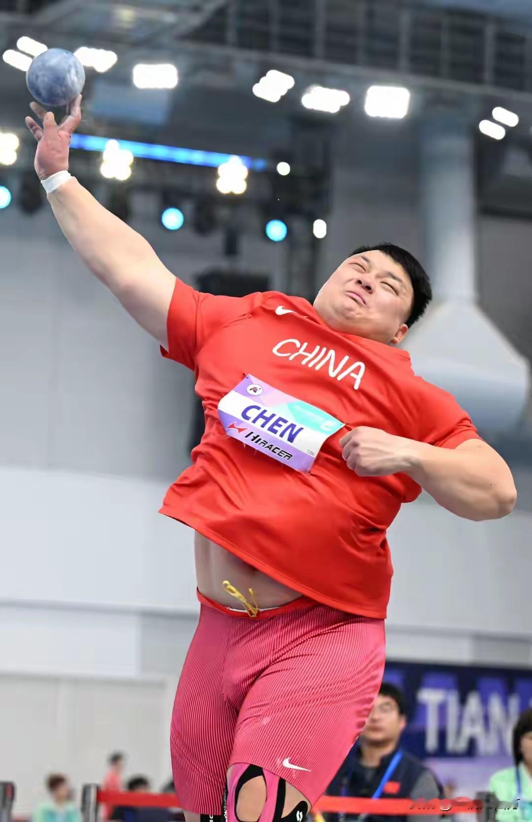 昨天进行亚洲室内田径锦标赛男子铅球决赛,新科全运会冠军陈成雨以20米07获得冠军