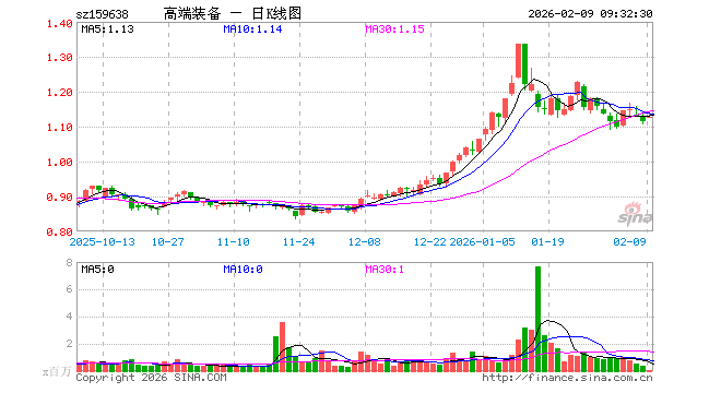 2月9日,高端装备ETF嘉实(159638)开盘涨0.99%,报1.125元。高端装备ETF嘉实(159638)重仓股方面,航天电子开盘涨2.65%,中国卫星涨1.92%,航发动力涨1.96%,中航沈飞涨0.96%,中航光电涨0.87%,航天发展涨1.61%,菲利华涨2.00%,中航西飞涨1.20%,西部超导涨2.27%,中航机载涨2.21%。