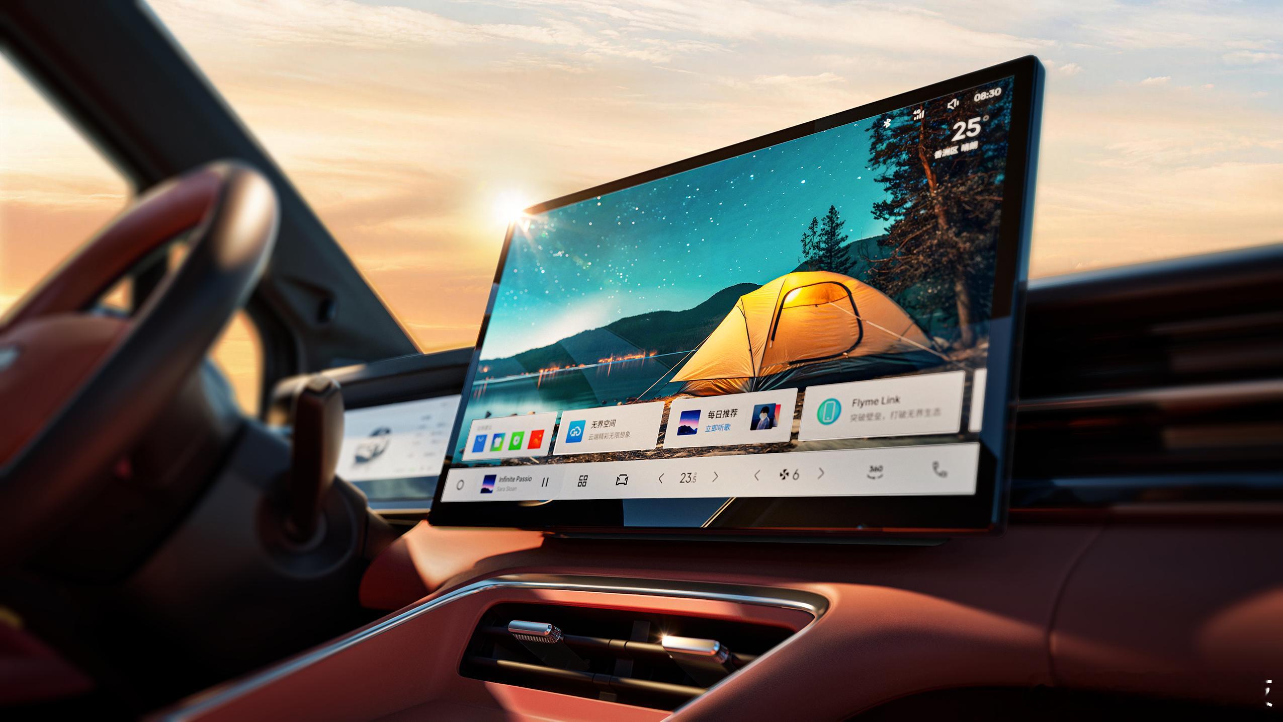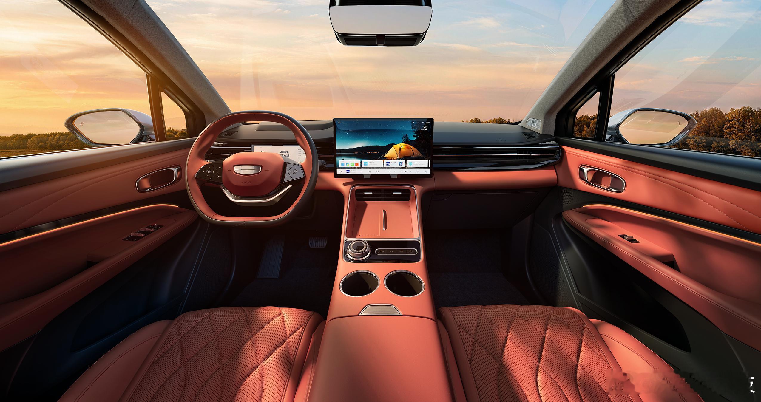 新车配备8.8英寸全液晶仪表与14.6英寸高清中控屏,采用集成式电子怀挡设计。悬浮式中央扶手台设上下双层储物格,上层支持50W风冷无线快充,下层超大容积便于收纳。指尖涡流触感旋钮兼具美学与实用,支持自定义主题、驾驶模式与温控。中控台保留了空调、音量实体按键,方便快捷操作。