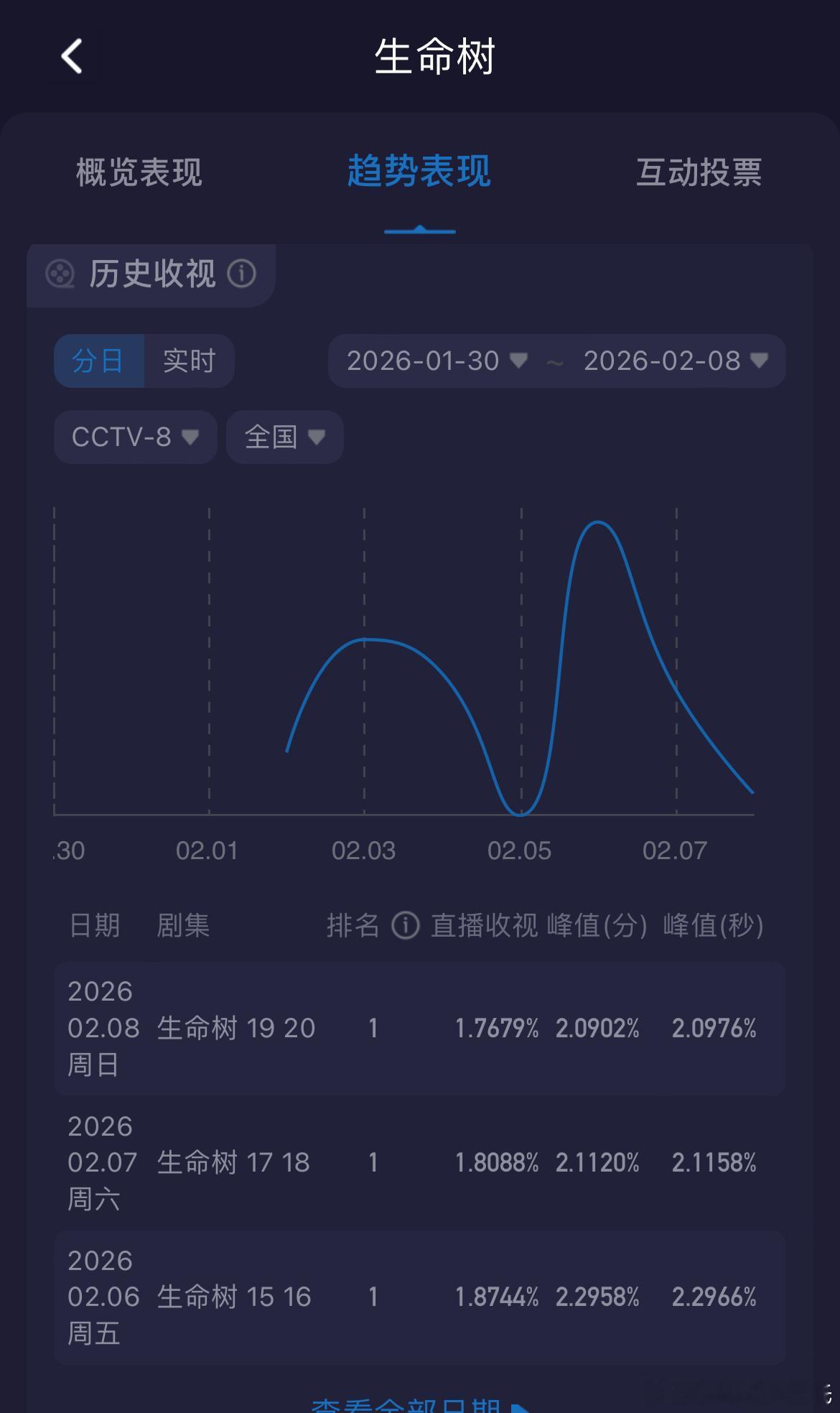 生命树 开播第10天爱奇艺站内热度8458,预计播放量云合1700+万;酷云1900+万;本来周五周六两天都连降70多热度的周日晚8点后突然升了,哈哈哈哈