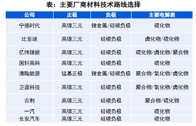 宁德时代、亿纬锂能等头部电池企业,已经明确了全固态电池的技术布局方向,其中电解质环节直接锁定硫化物路线,正极材料则采用阶梯式推进方案——短期先用高镍三元材料过渡,满足现阶段的技术落地需求,长期再升级到富锂锰基材料,进一步挖掘性能潜力。