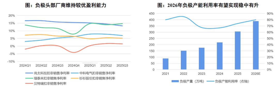 2026年,随着下游需求持续增长,负极材料的产能利用率有望实现稳中有升,对应的产品价格也具备修复空间。