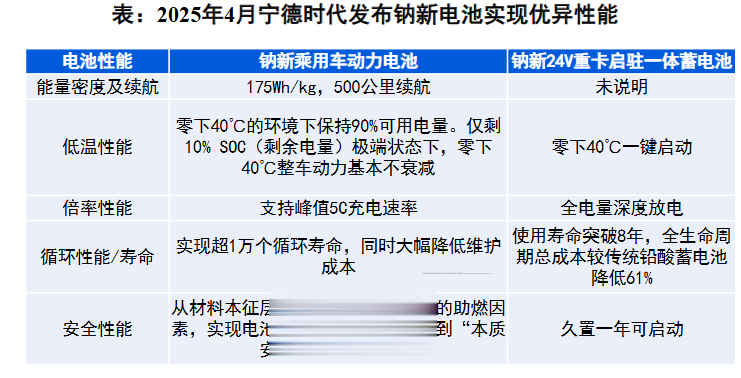 宁德时代2021年推出第一代钠离子电池后,于2025年4月发布钠新电池,其两款产品可在-40℃至70℃稳定运行,性能优异;通过骁遥双核电芯技术实现低温+远航体验,成为全球首款通过新国标认证的钠离子电池。