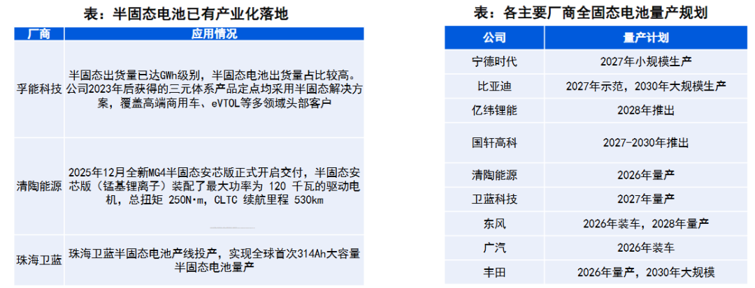 与此同时,头部电池厂与车企已达成明确的时间规划——2027年实现全固态电池小批量装车,2030年进入规模化量产阶段。