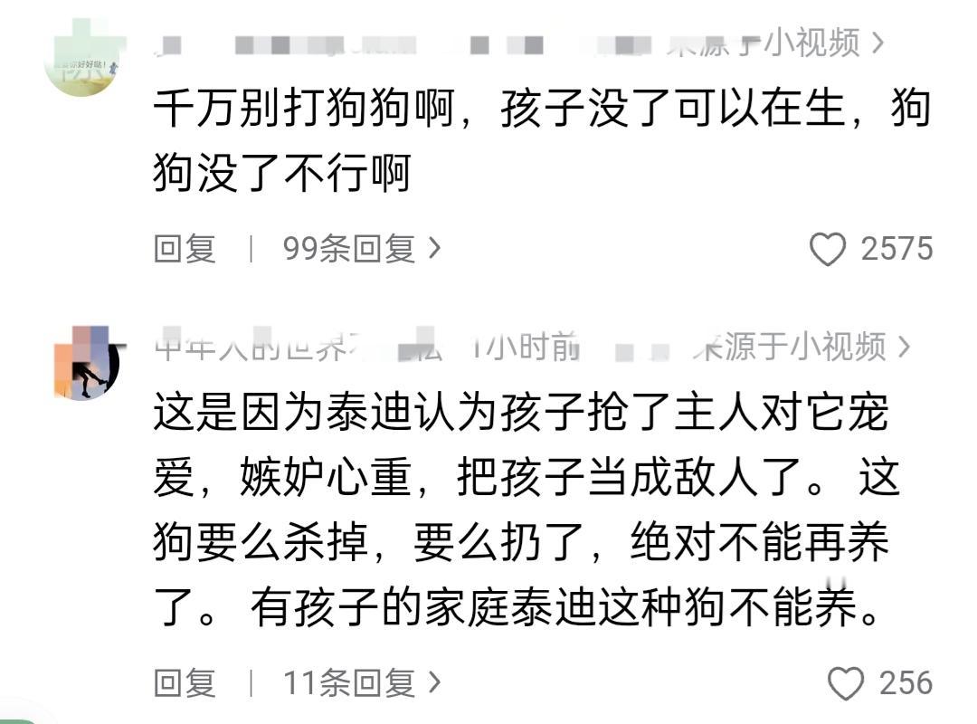 家养5年的泰迪毫无征兆的攻击小主人,还好看孩子的老人没看手机啥的,如果看孩子走神后果不堪设想! 评论区的网友绝了,让狗主人千万别打狗狗,人没了可以再生,狗狗没了可就真没了! 还有的网友建议处理掉狗狗,以防后患,这种狗有嫉妒心,知道和人争宠了,都用上绝对了! 如果是你,会怎么办呢?