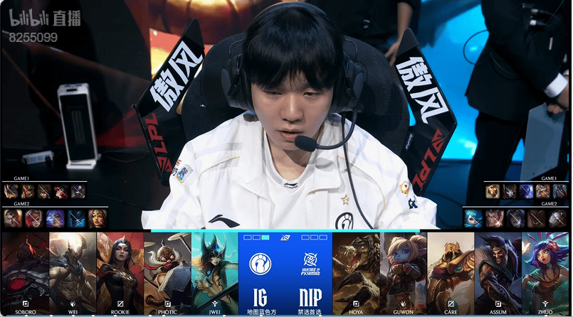 IG选用:Soboro塞恩,Wei潘森,Rookie妖姬,Photic飞机,Jwei娜美