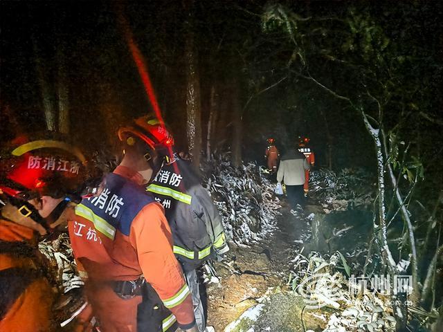 接警后,富阳区消防救援大队第一时间调派救援力量赶赴现场展开救援。考虑到夜间山林视线差、地势险,救援人员沿途仔细搜寻,经过近1小时的艰难排查,终于在小河边找到两名被困驴友,此时二人已因低温冻得瑟瑟发抖。
