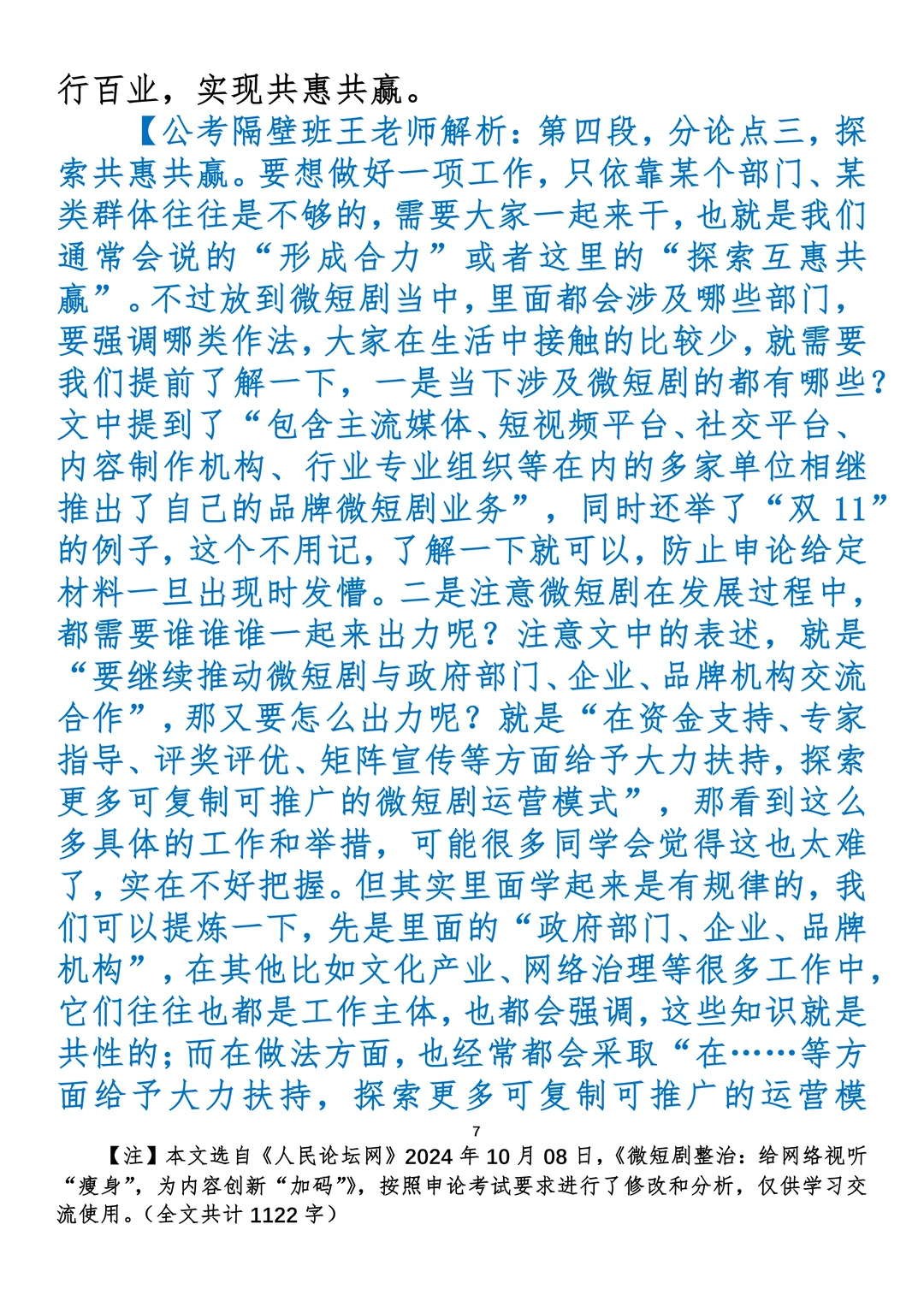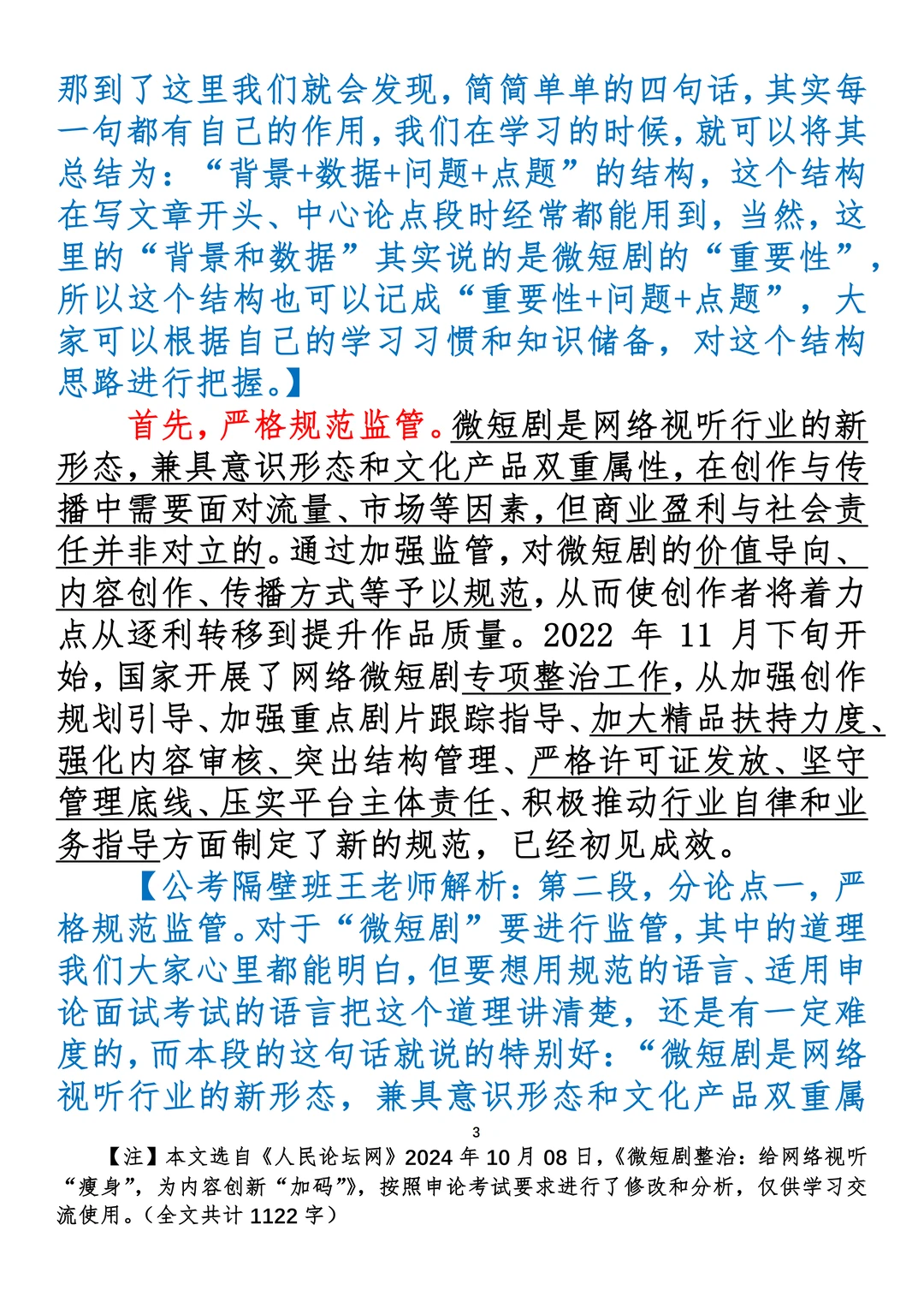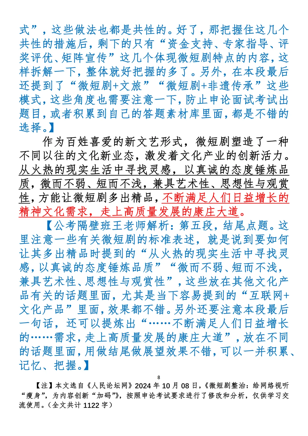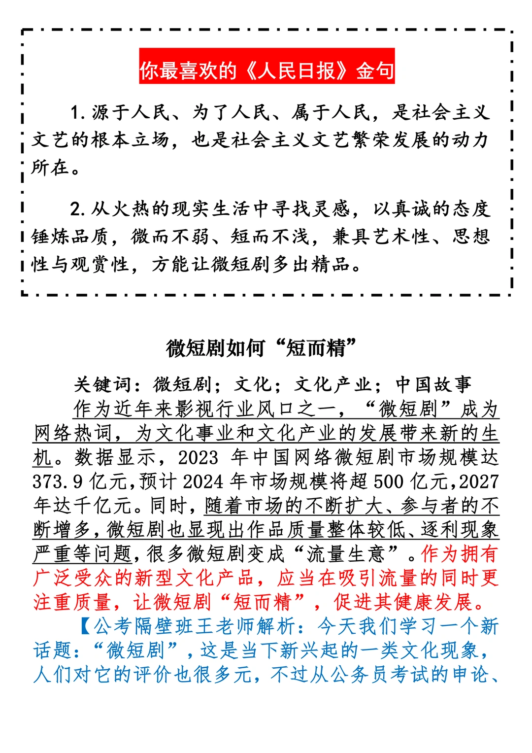 如何抄写:每日抄写文章发在“公考隔壁班王老师”账号,红色字是重点句和结构句,黑色字是正文,蓝色字是解析,大家抄写时不必抄蓝色字。建议先通读全文,做到心中有数再开始抄写,效果会更好。 关于文章:抄写文章来源于人民日报,但每篇文章我都根据申论考试要求进行了修改:一是重写或修改开头、结尾;二是统一段首句句式结构;三是调整段落字数,使文章结构更均衡;四是简化复杂长难句,使之更具可模仿性。每篇文章无论修改多少,都是基于申论考试要求,毫无对人民日报文章品评之意。(此处致敬人民日报)