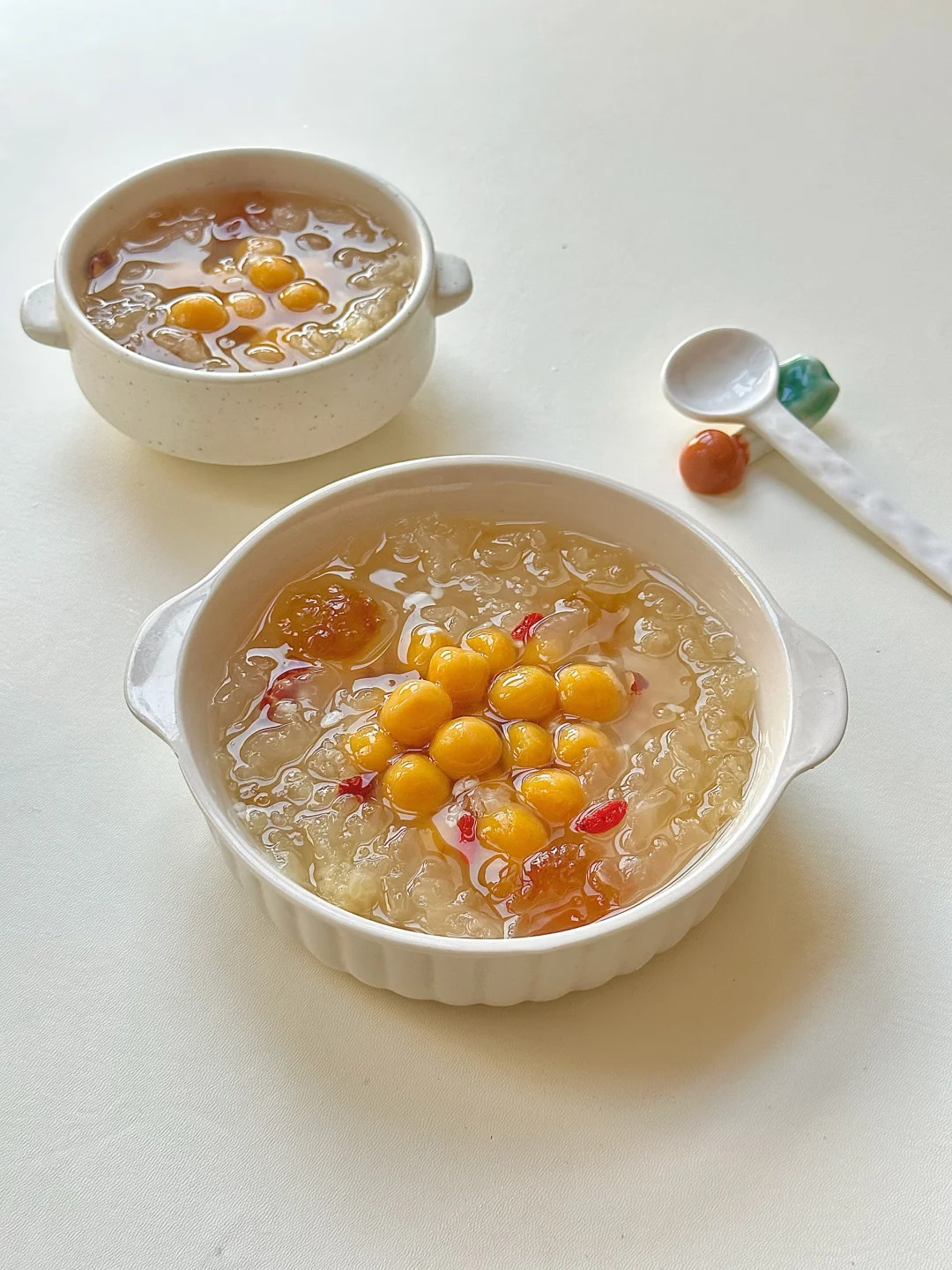 尝试做了升级版:银耳酒酿南瓜小丸子 ✨