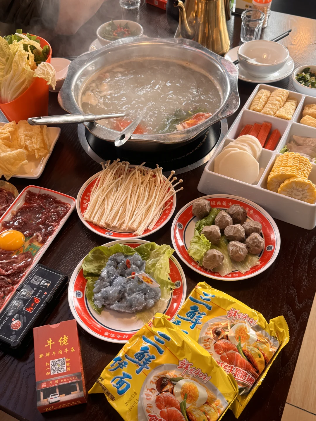 谁懂啊家人们!终于挖到一家牛肉火锅的天花板,新鲜度直接拉满💯! 据说这儿的牛肉都是每天凌晨从屠宰场新鲜运过来的,涮进锅里几秒钟就变色,入口那个嫩啊💃! 配菜也一点都不马虎,青菜水灵灵的,菌菇肥嘟嘟的,连豆腐都透着豆香气~这家店的老板是对食材有执念吧?!吃一顿就觉得以前的牛肉都白涮了……赶紧艾特你的饭搭子,这份鲜甜不等人!